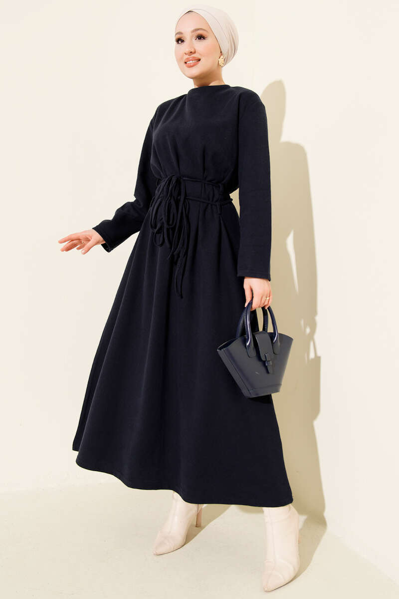 Fularlı İp Bağcık Detaylı Elbise Siyah