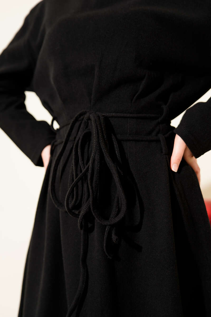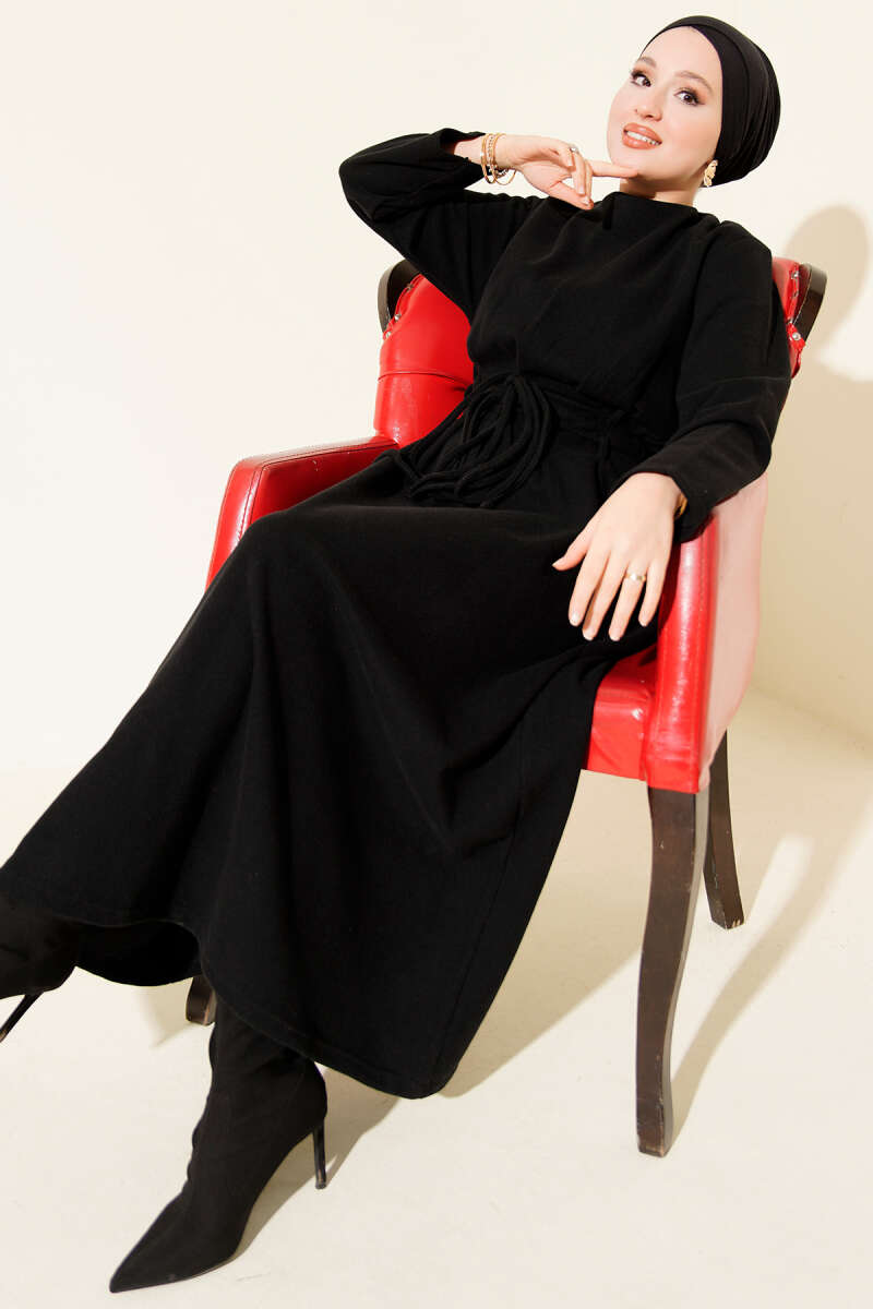 Fularlı İp Bağcık Detaylı Elbise Siyah