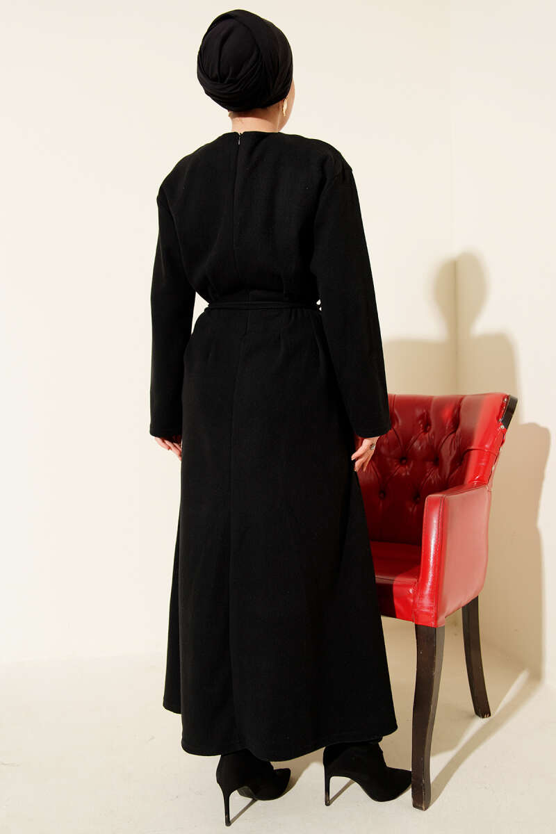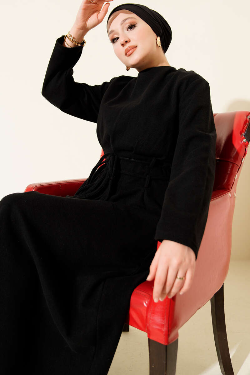Dik Fitilli Kuşaklı Basic Elbise Siyah