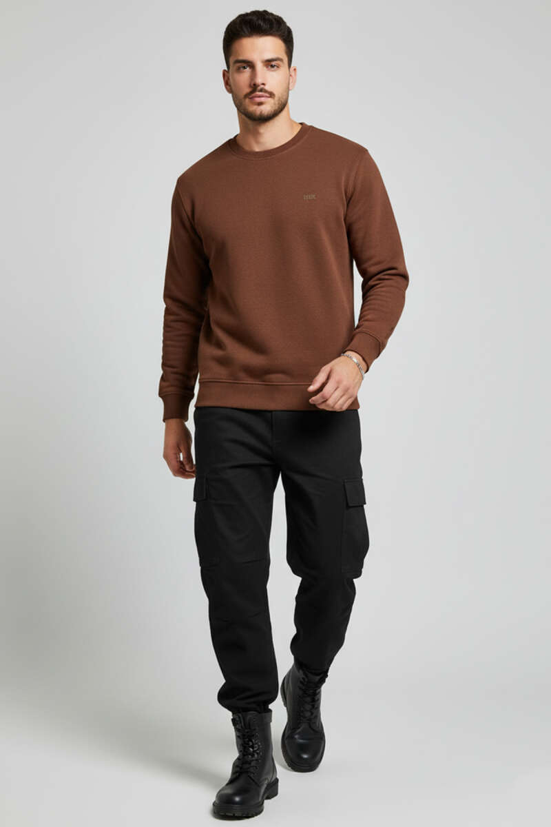 Bisiklet Yaka Basic Erkek Sweatshirt Taş