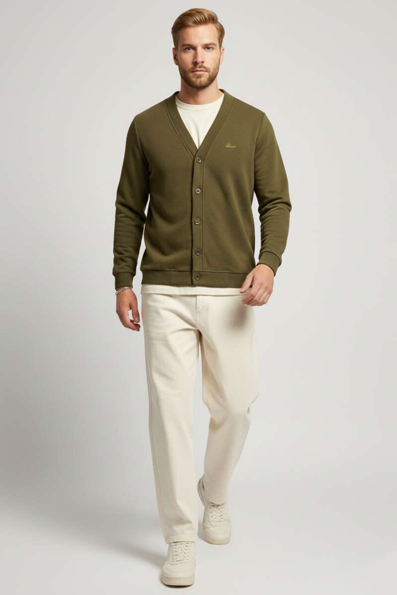 Selanik Düğmeli Erkek Hırka Çağla Yeşili