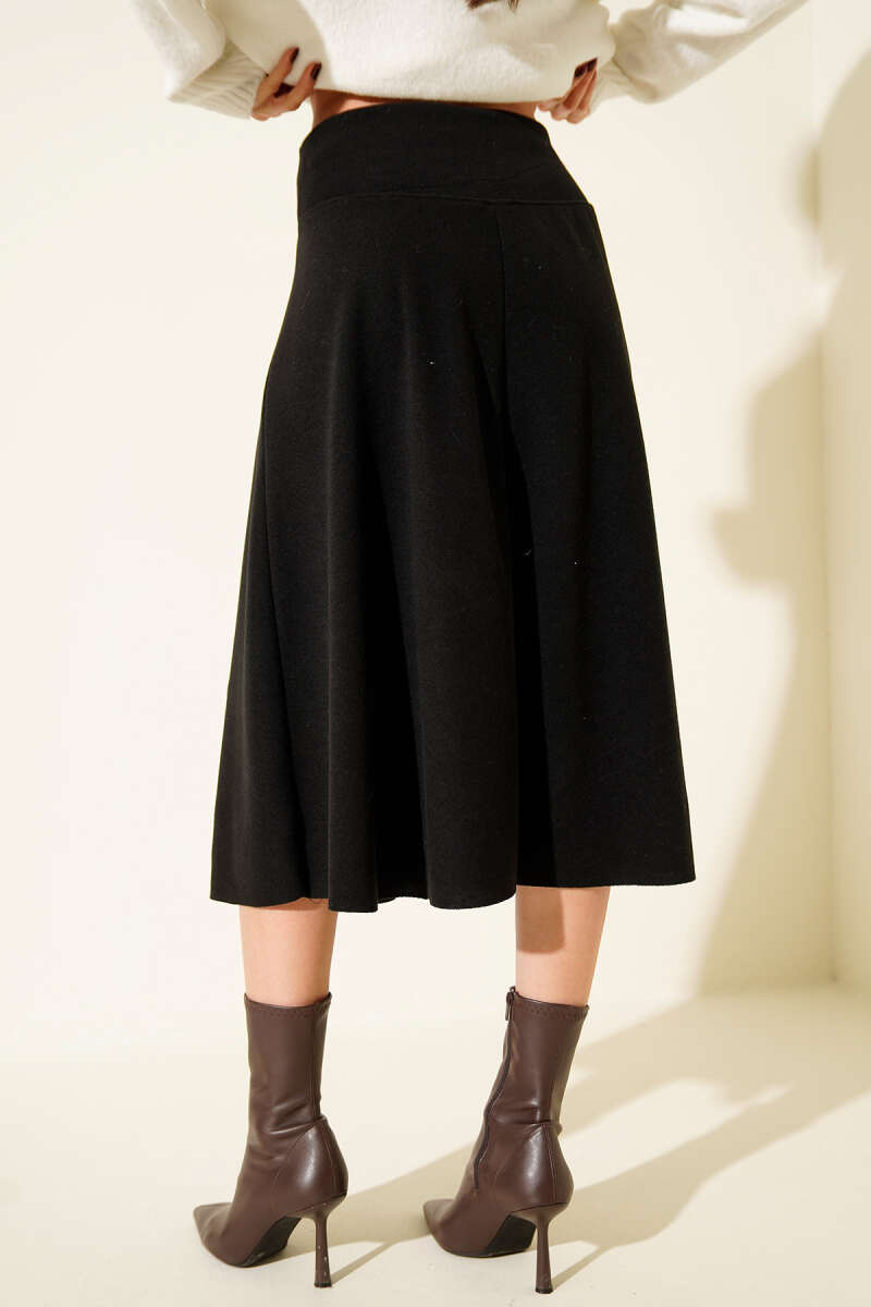 Etek Düğmeli Fitilli Elbise Siyah