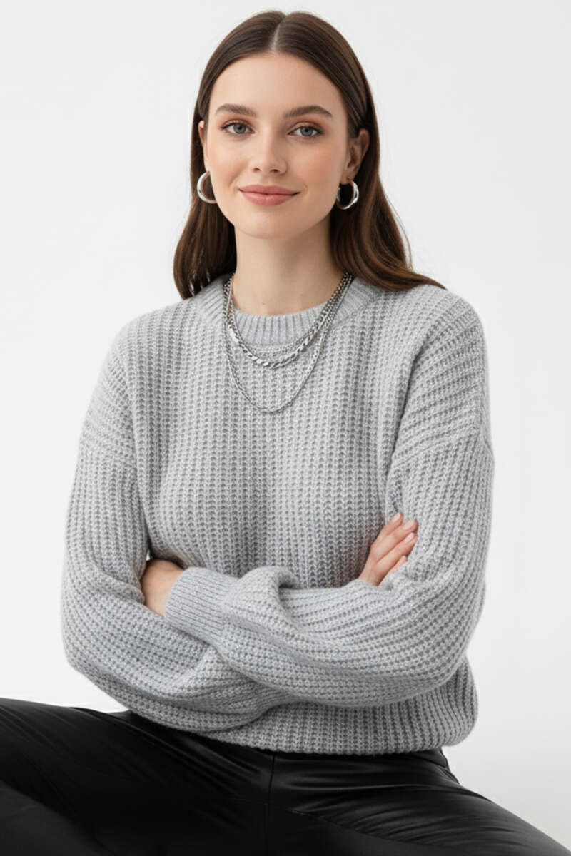 Bisiklet Yaka Sakal Detaylı Kazak Kemik