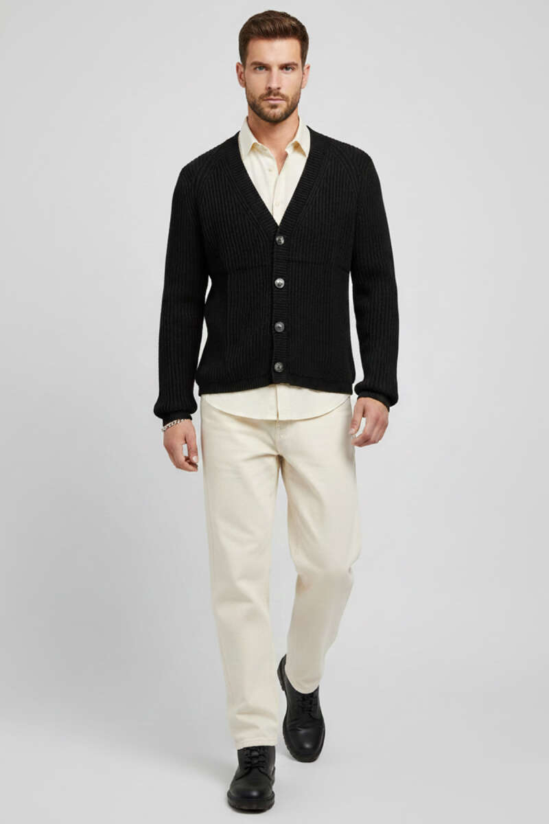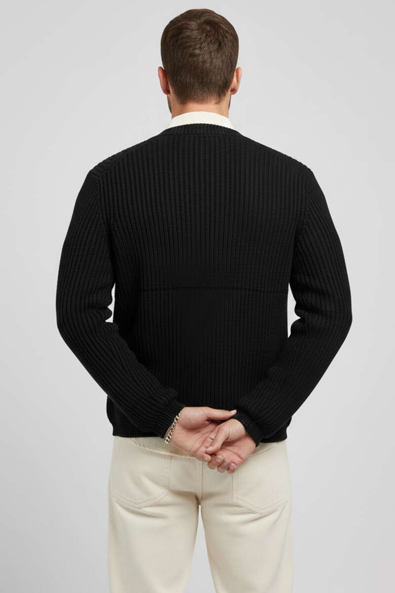 Selanik Örgü Düğmeli Erkek Triko Hırka Siyah