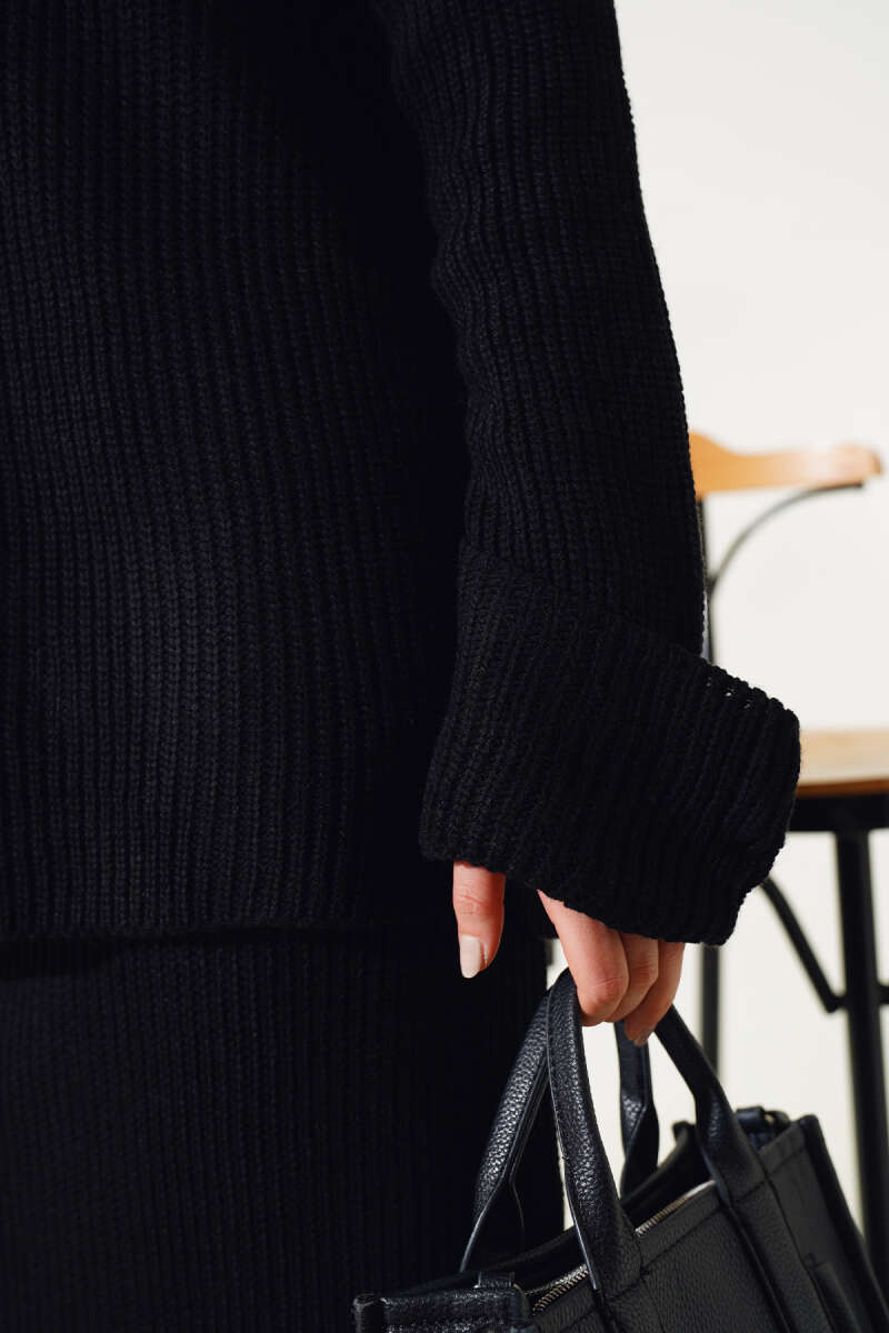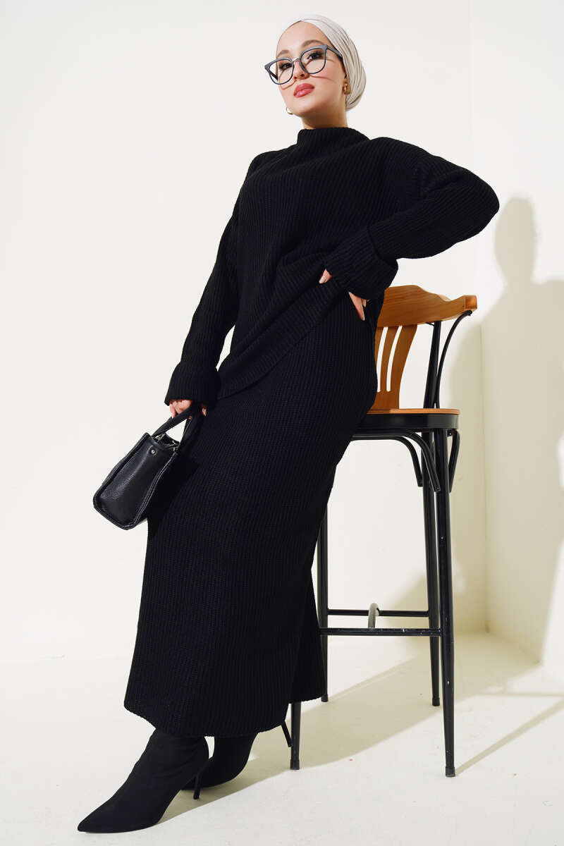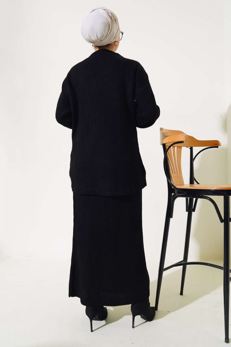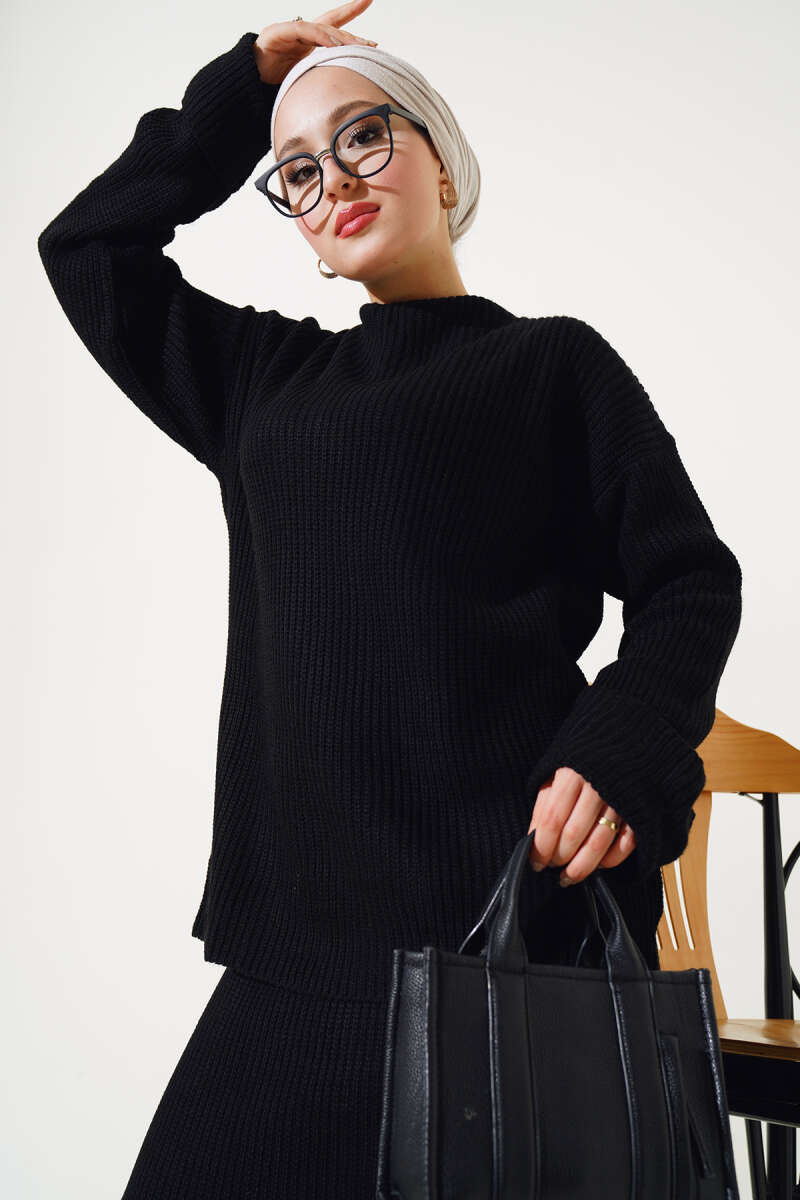 Balon Kol Balıkçı Yaka Triko İkili Takım Siyah