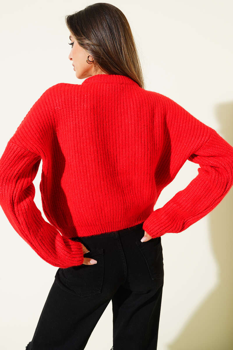 Bisiklet Yaka Uzun Triko Elbise Bordo