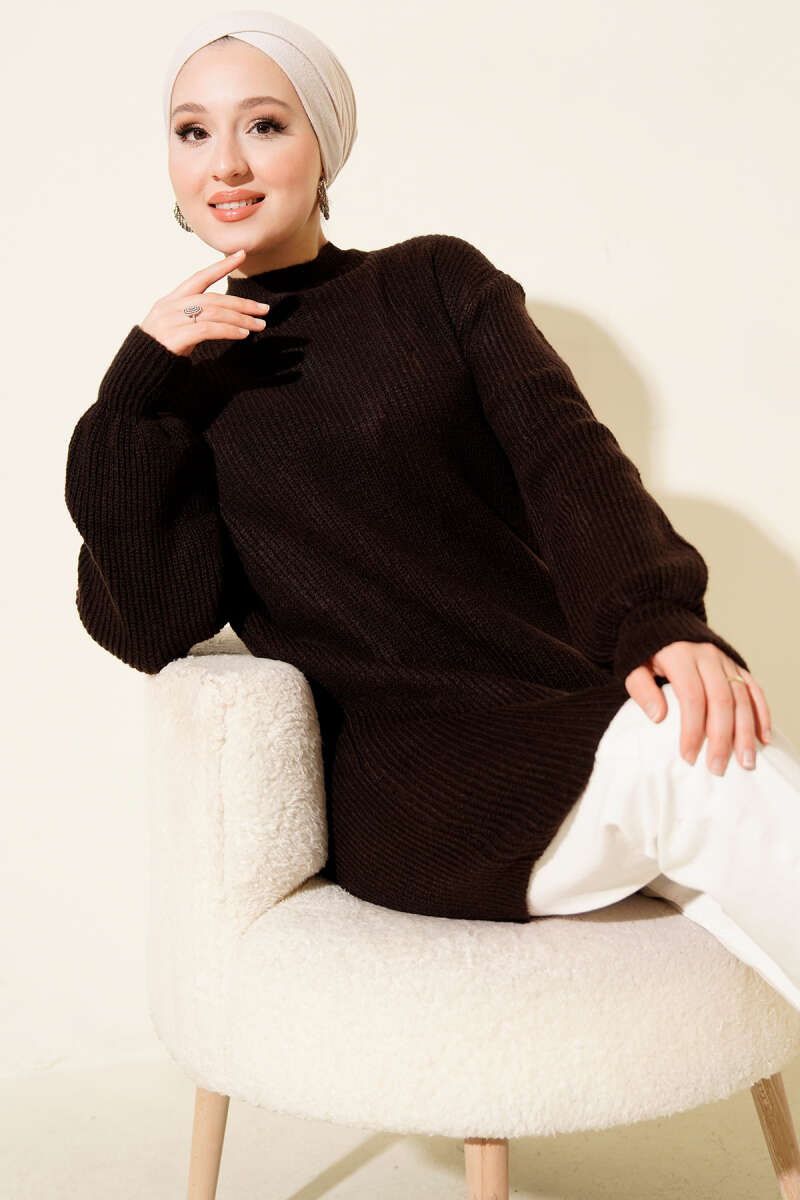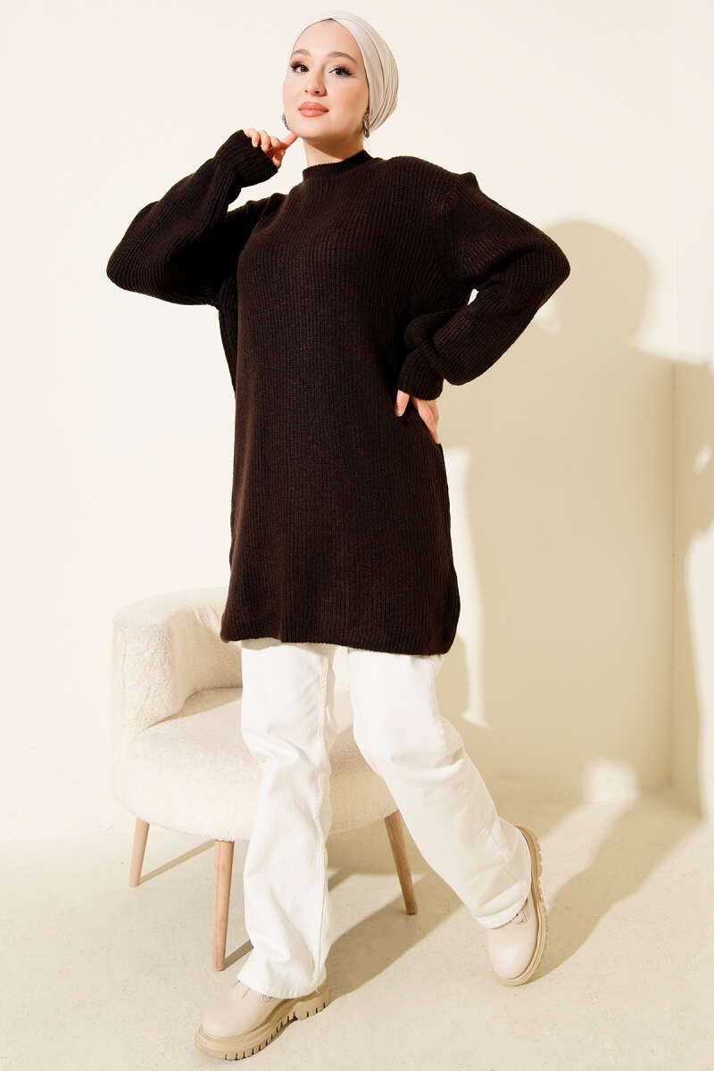 Ribana Görünümlü Triko Tunik Kahve