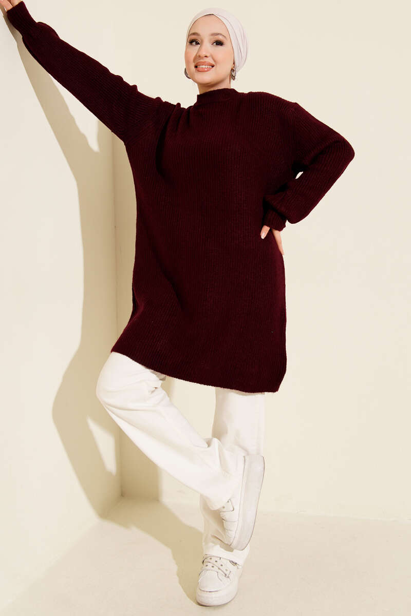 Omuz Gold Düğme Detaylı Tunik Bordo