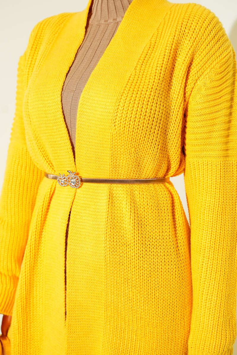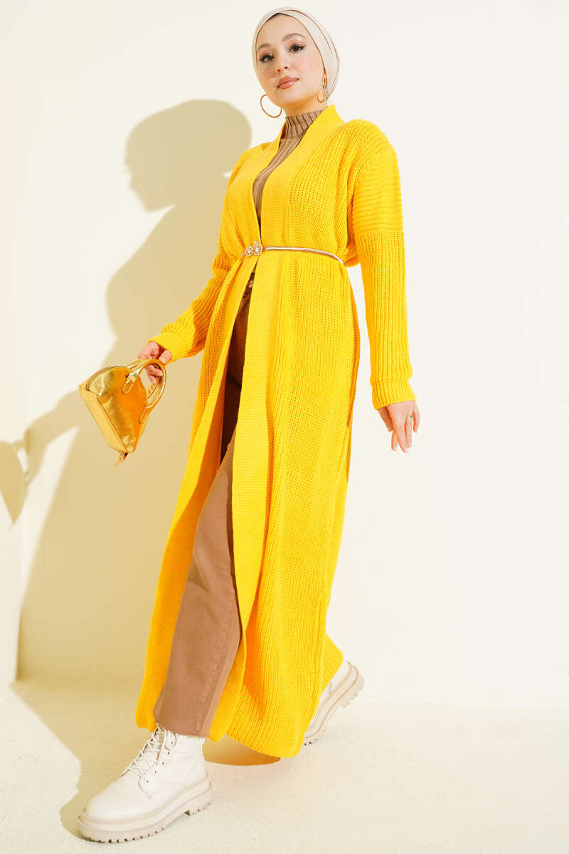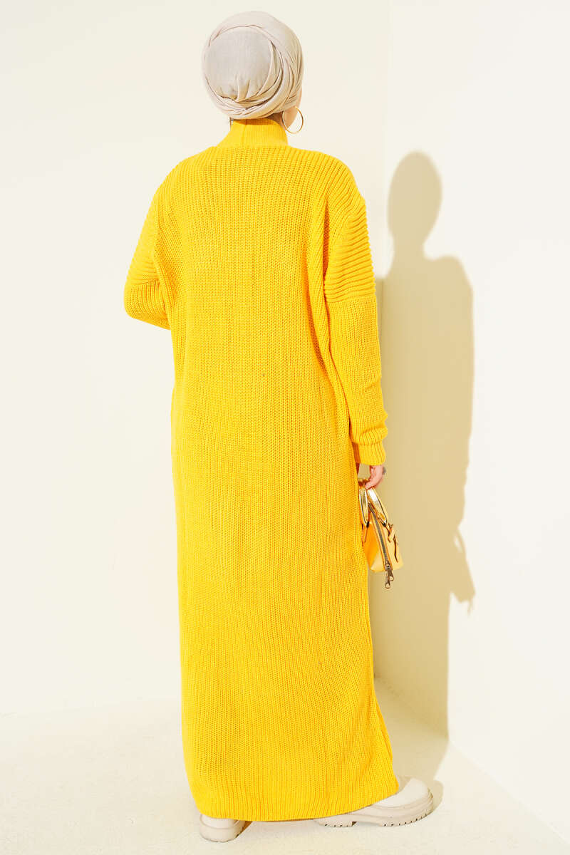 Selanik Örgülü Uzun Triko Hırka Yeşil