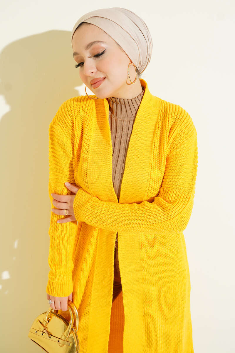 Selanik Örgülü Uzun Triko Hırka Vizon