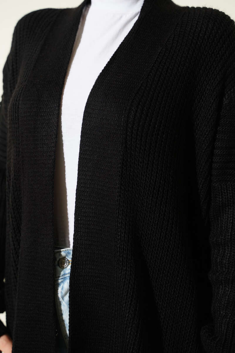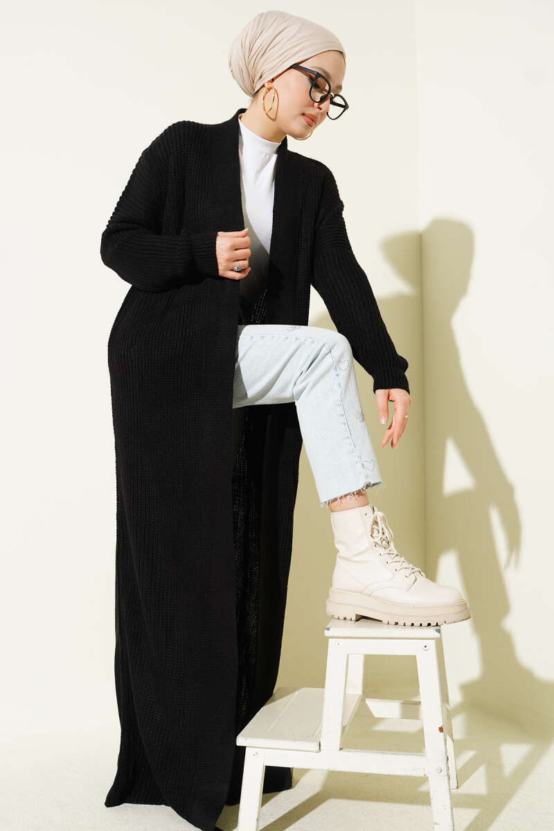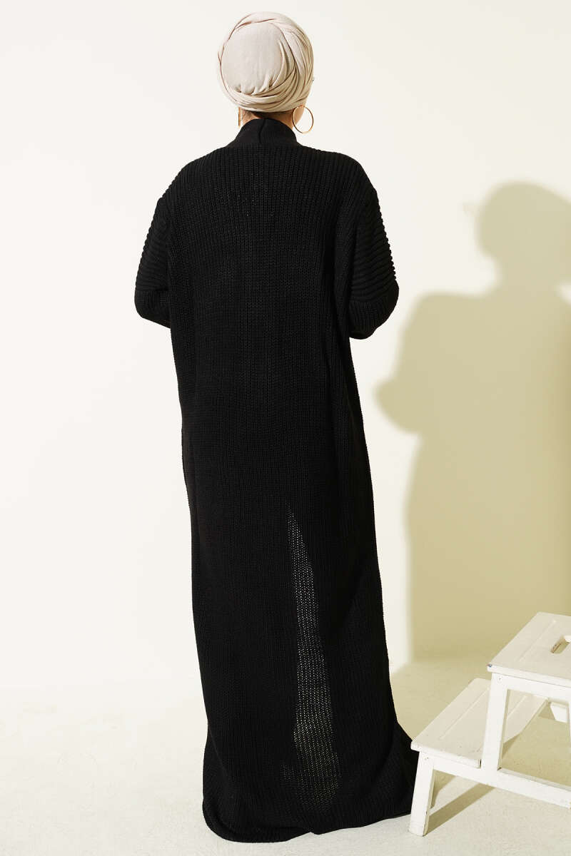 Selanik Örgülü Uzun Triko Hırka Petrol