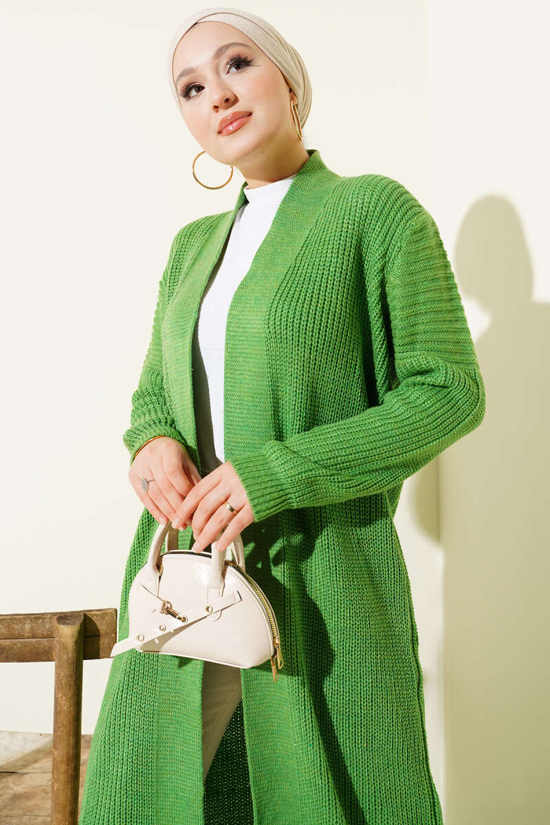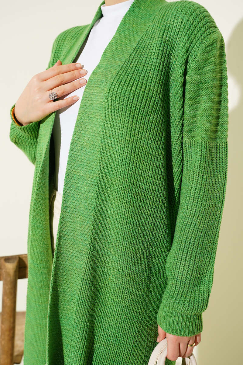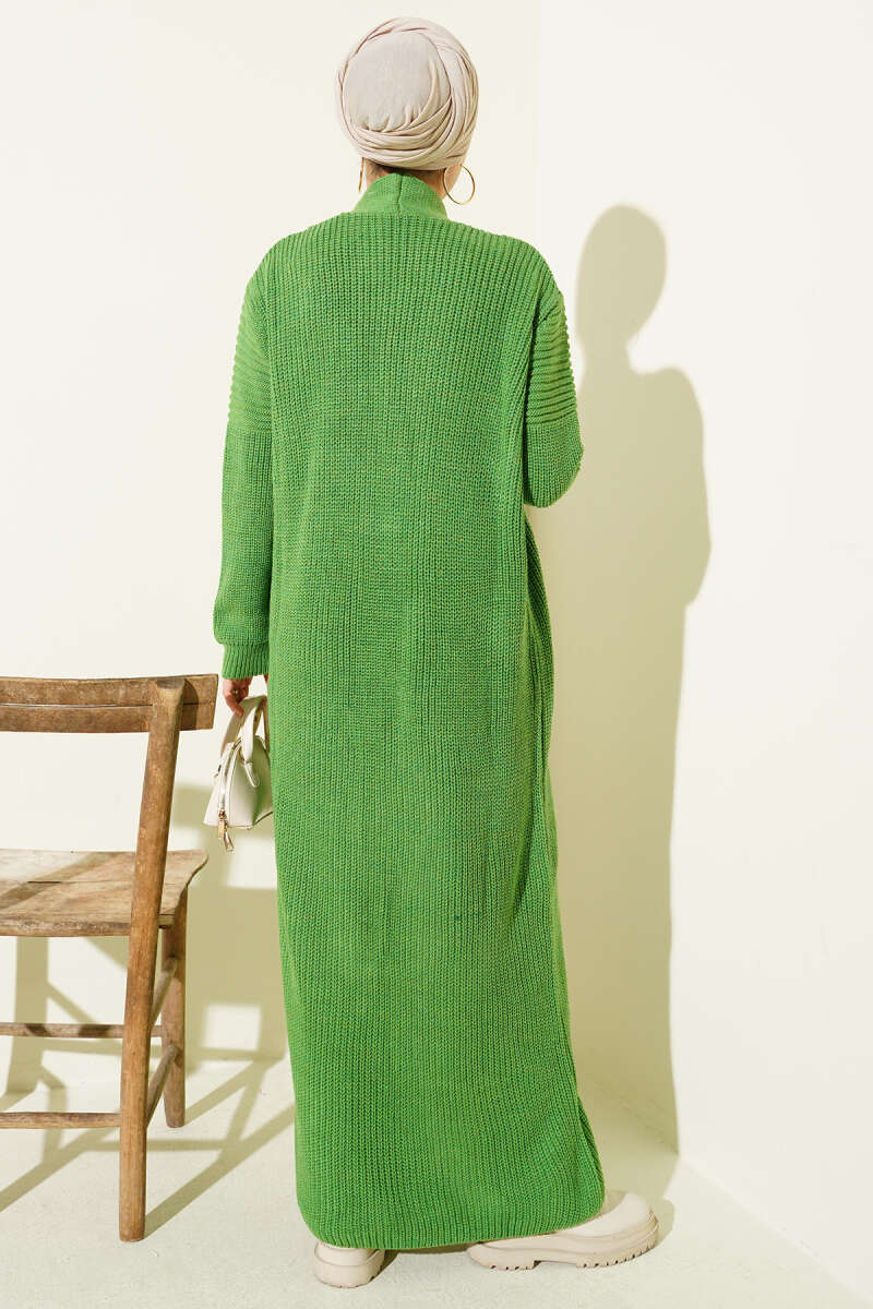 Selanik Örgülü Uzun Triko Hırka Petrol