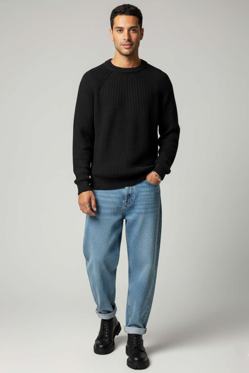 Basic Yarım Balıkçı Erkek Kazak Siyah
