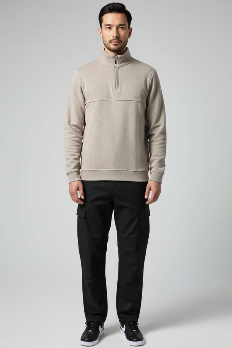 Selanik Yarım Fermuarlı Erkek Sweatshirt Kahve