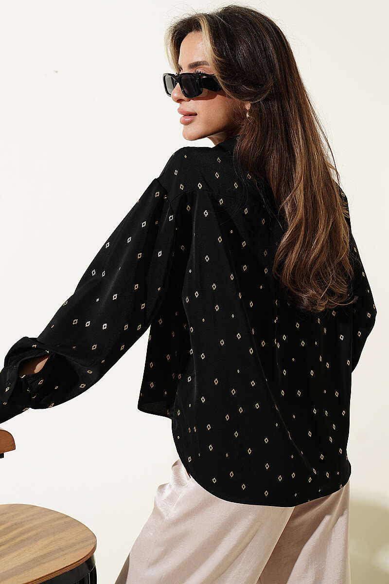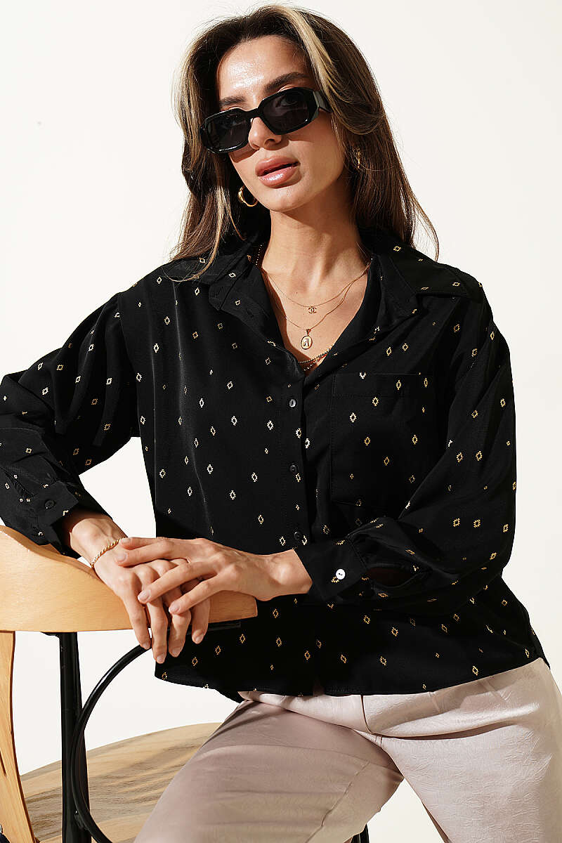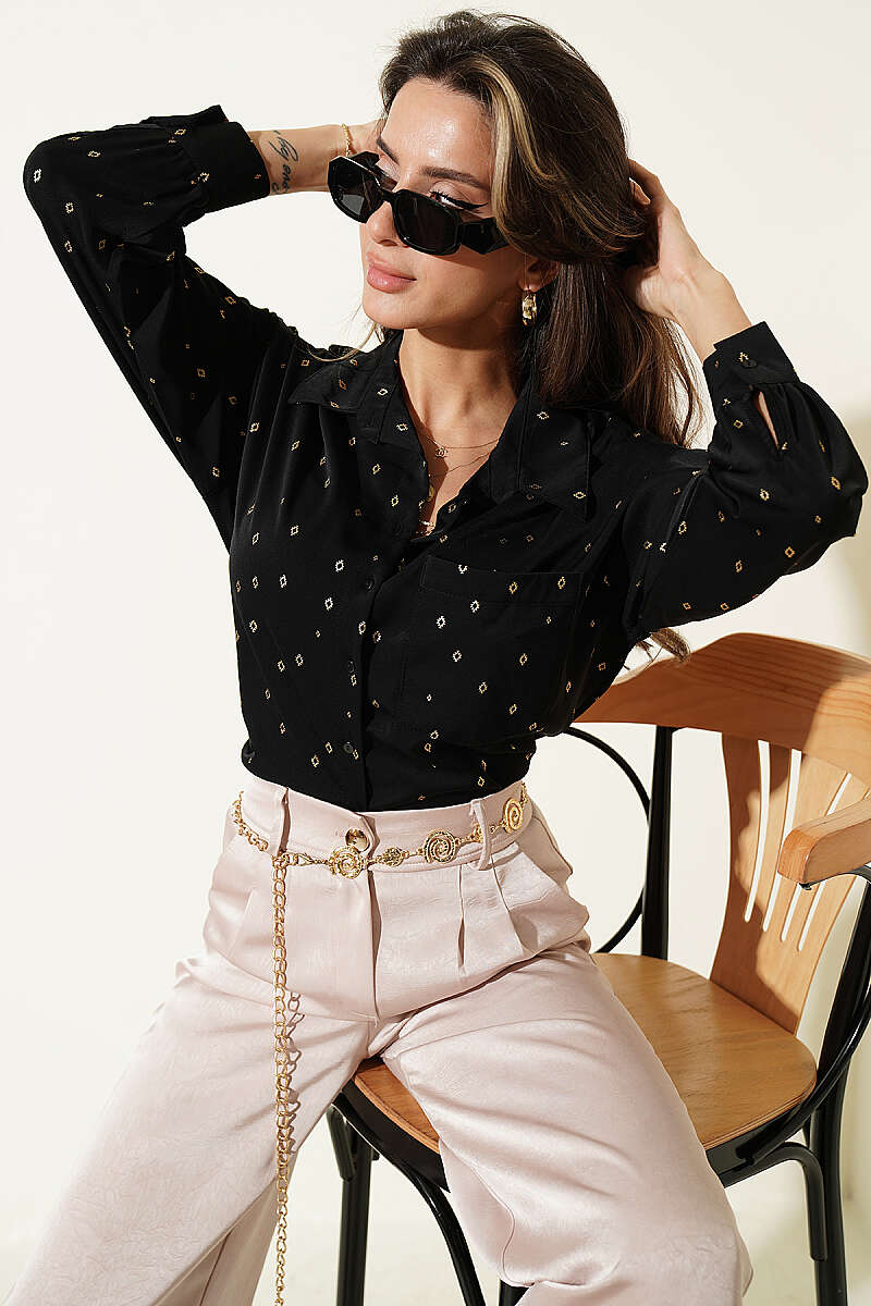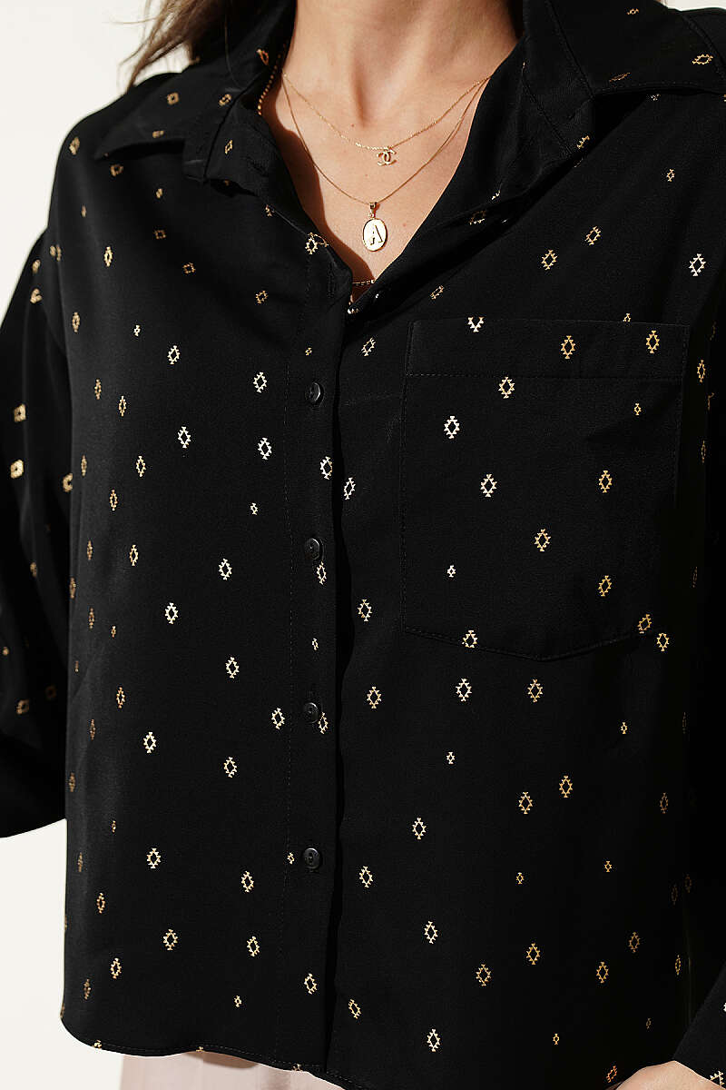 Sembol Baskılı Cepli Kısa Gömlek Siyah