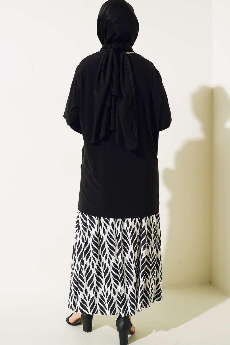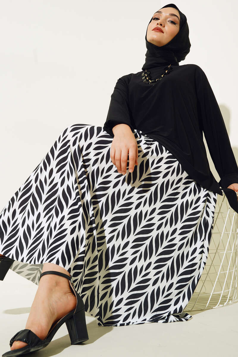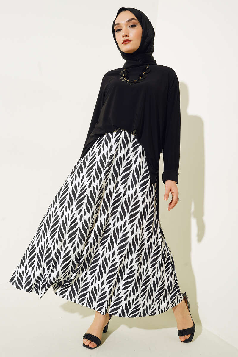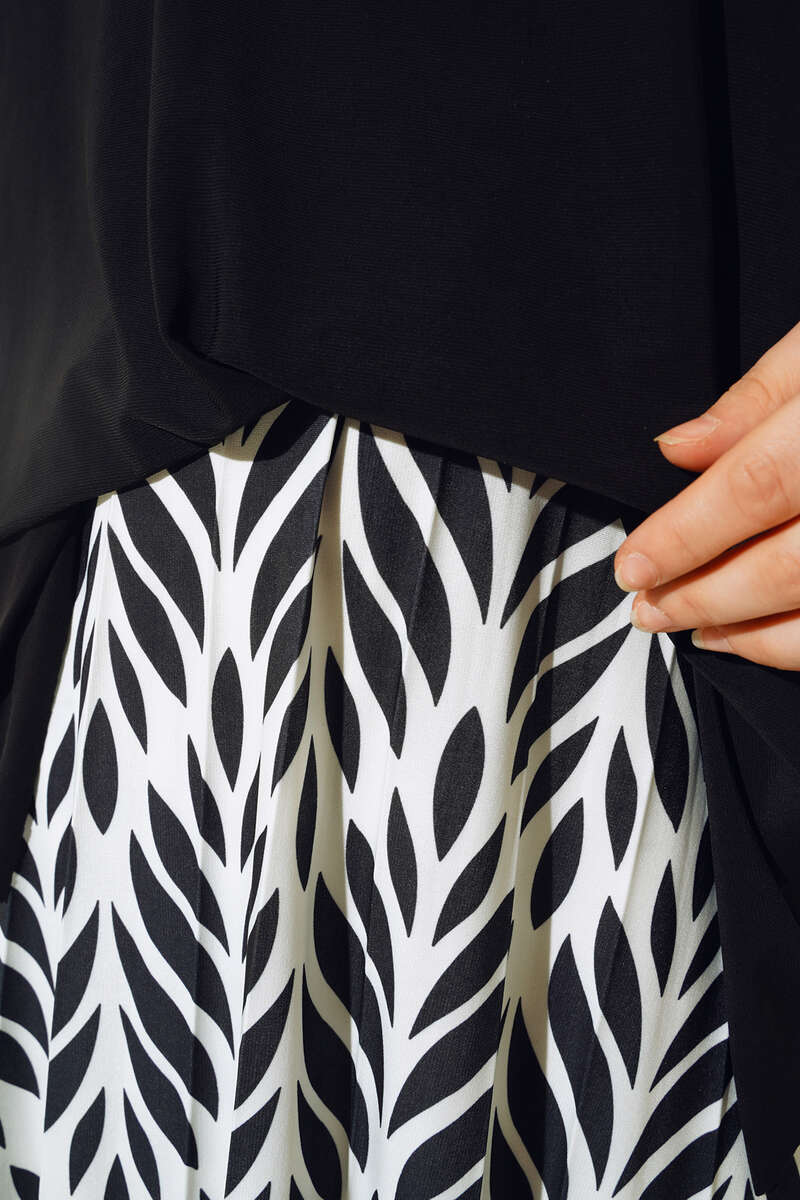 Yaprak Desenli Pliseli Etekli Takım Siyah