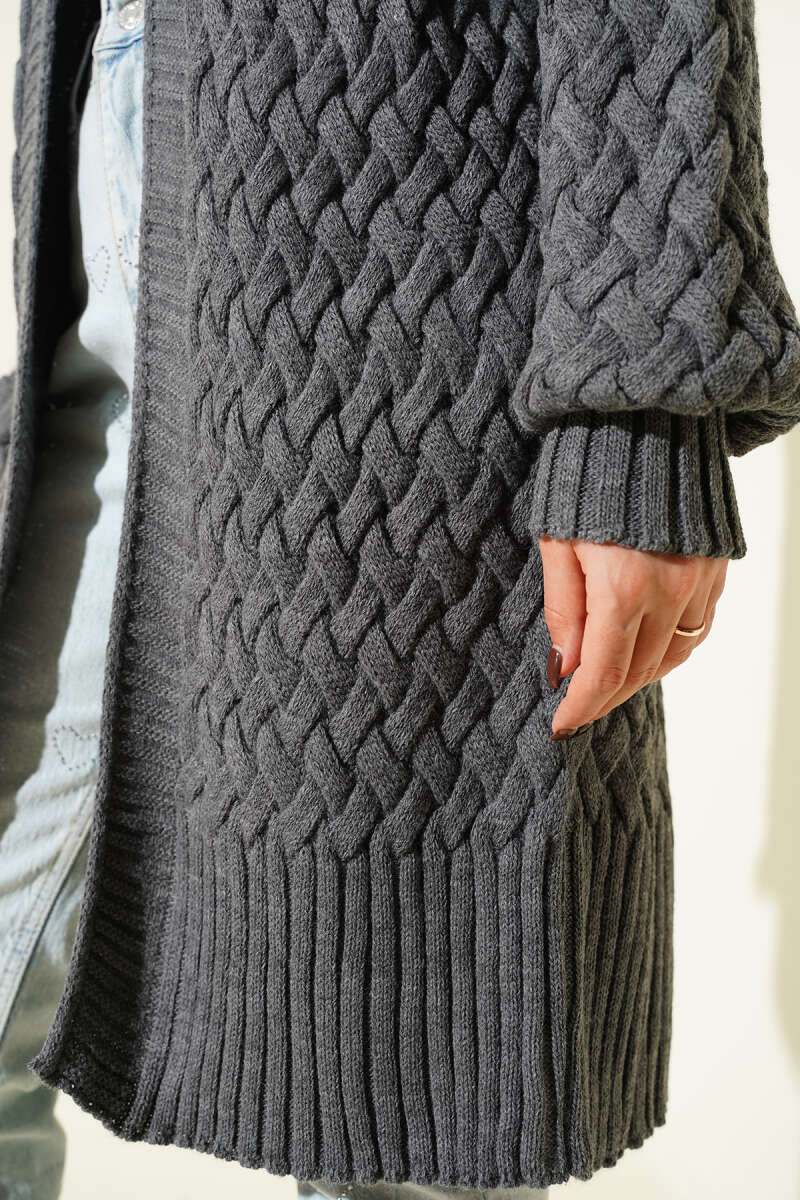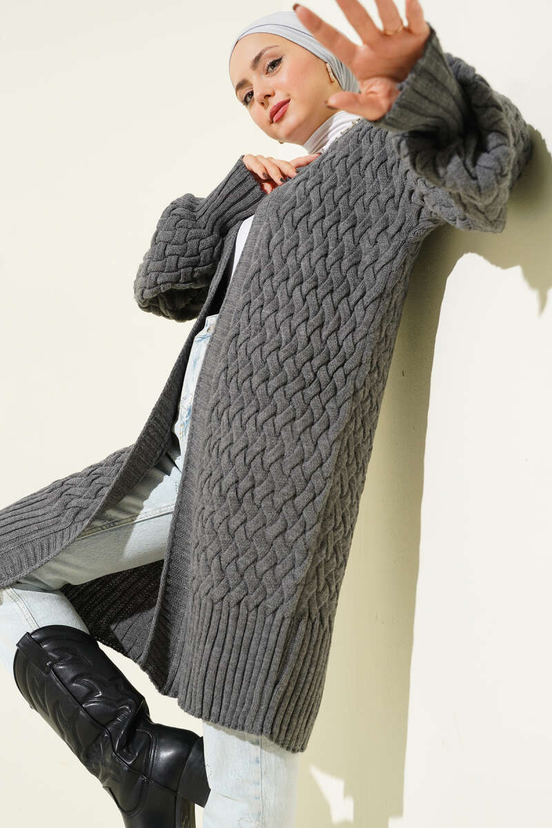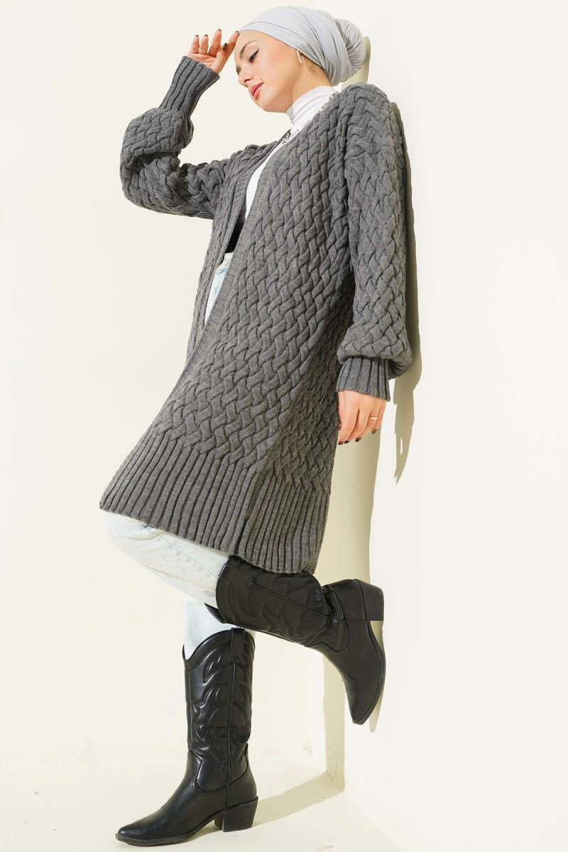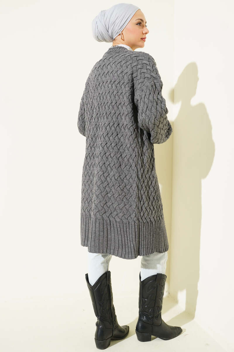Atkılı Düğmeli Cepli Triko Hırka Füme