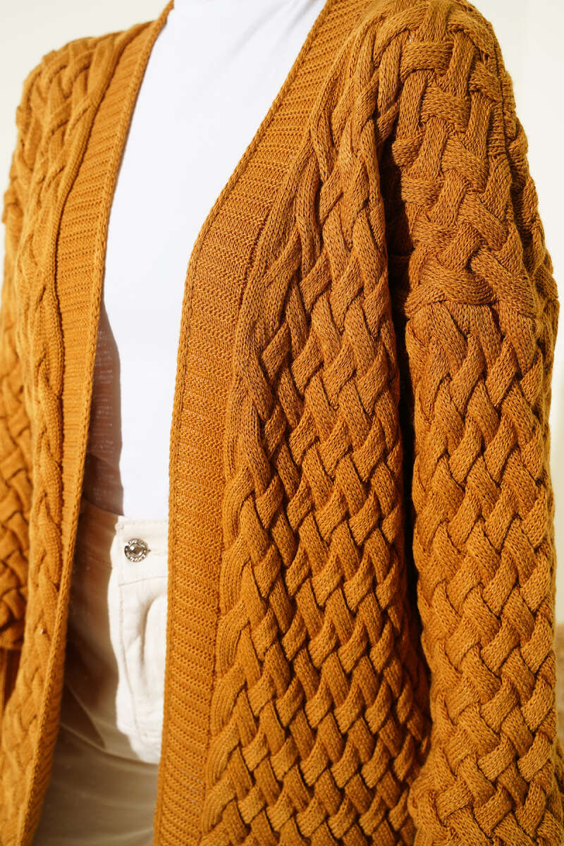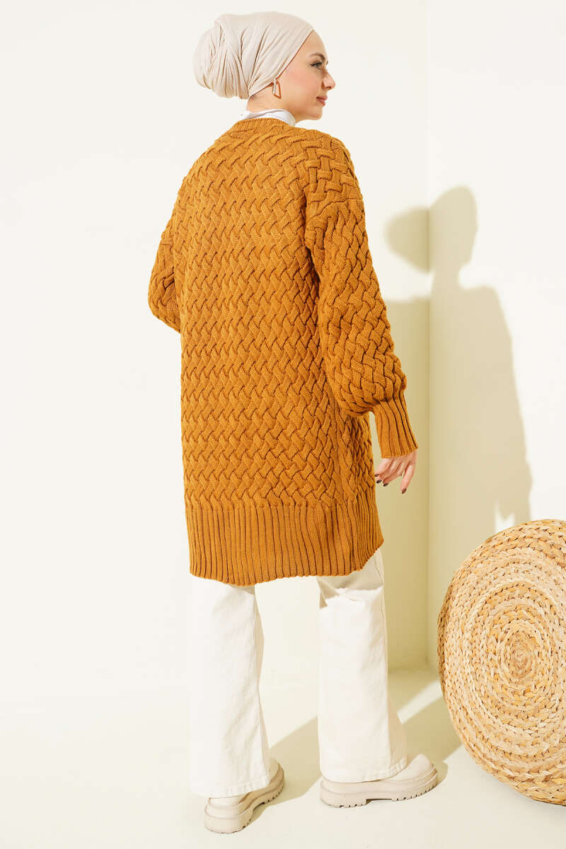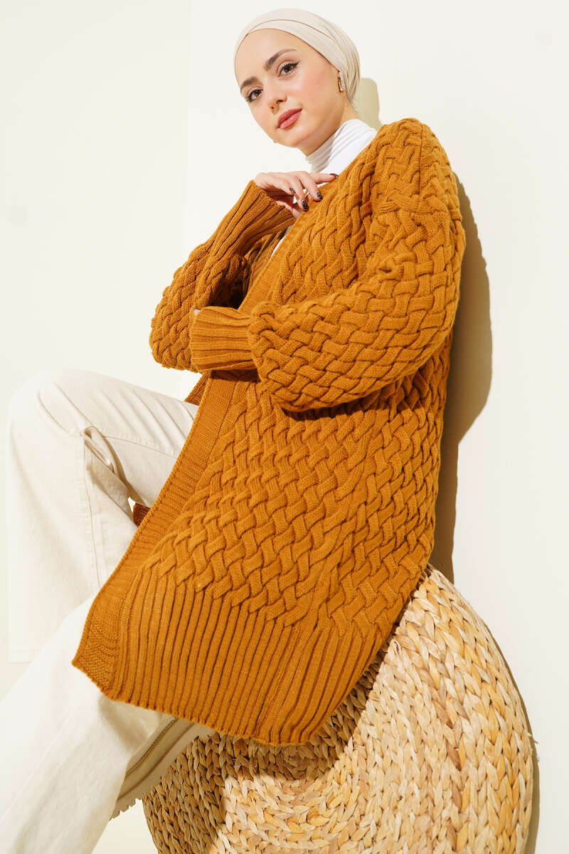 Atkılı Düğmeli Cepli Triko Hırka Kahve
