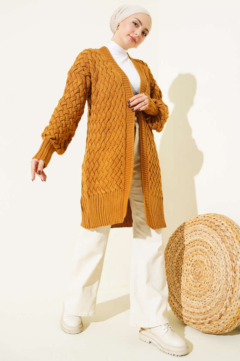 Atkılı Düğmeli Cepli Triko Hırka Vizon