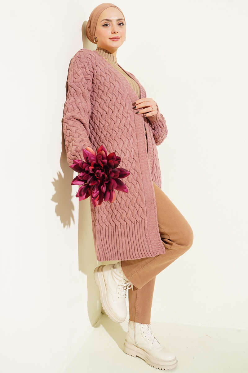 Sepet Örgü Triko Hırka Kahve