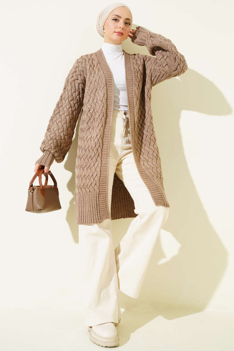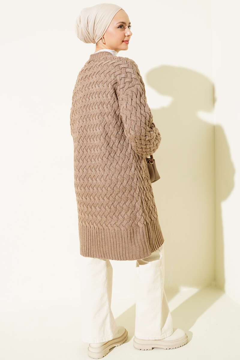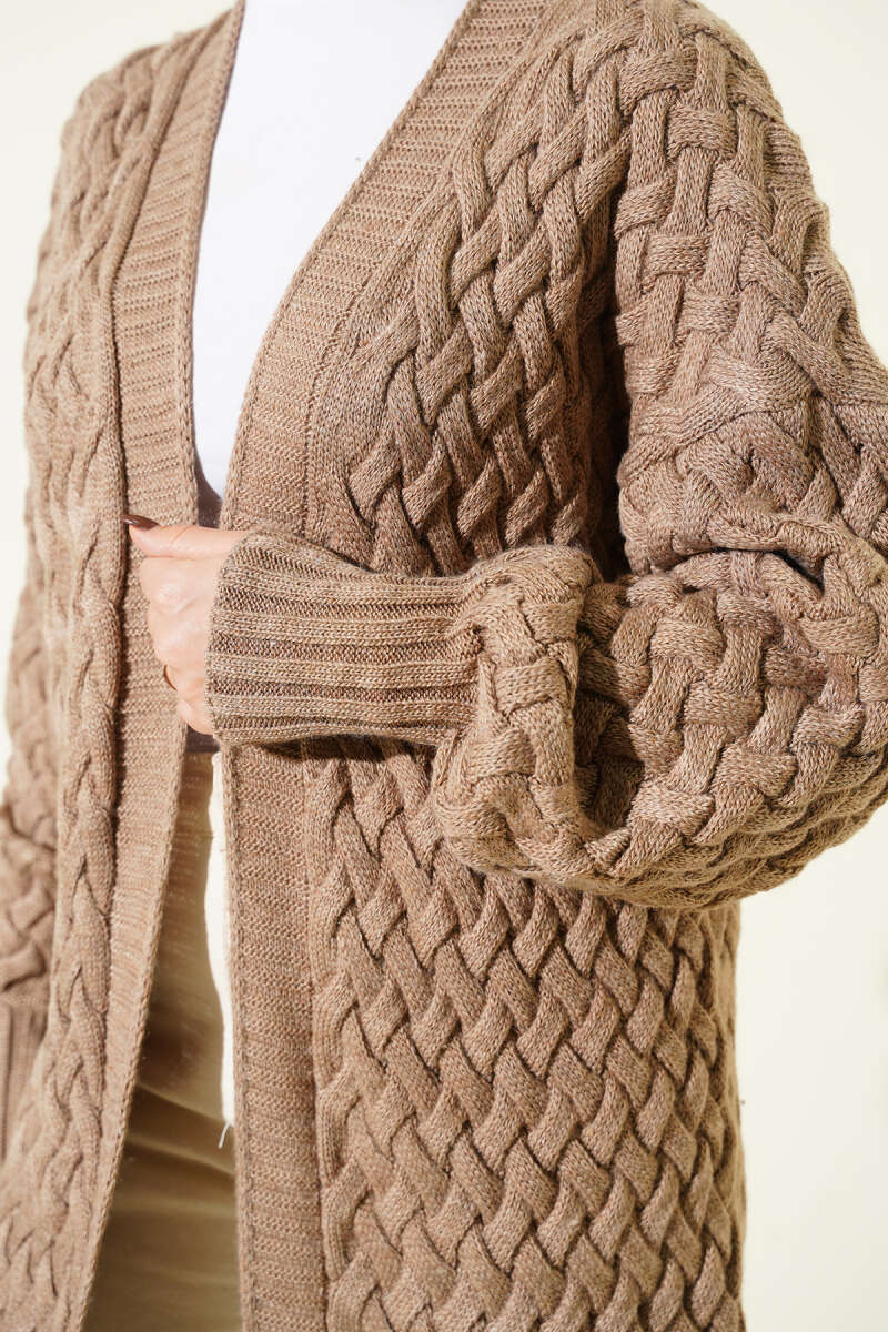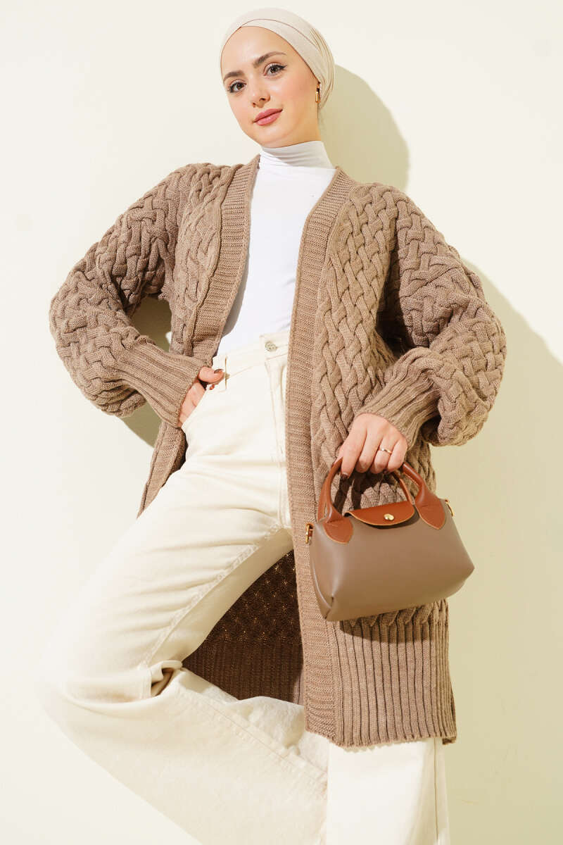 Sepet Örgü Triko Hırka Kahve