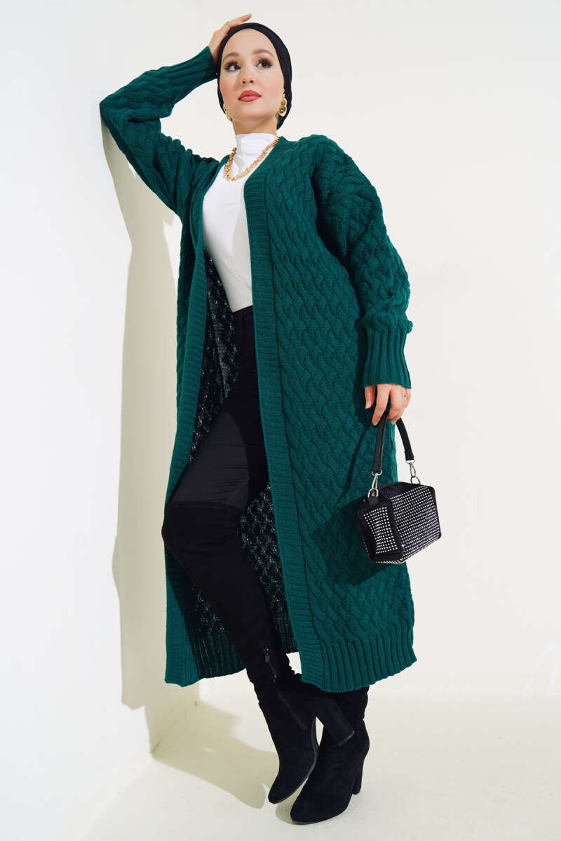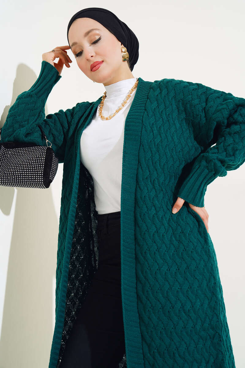 Sepet Örgü Uzun Triko Hırka Büsküvi