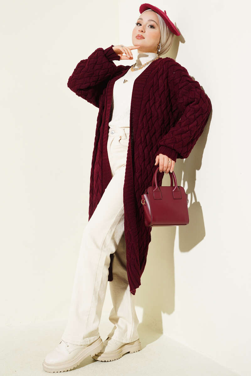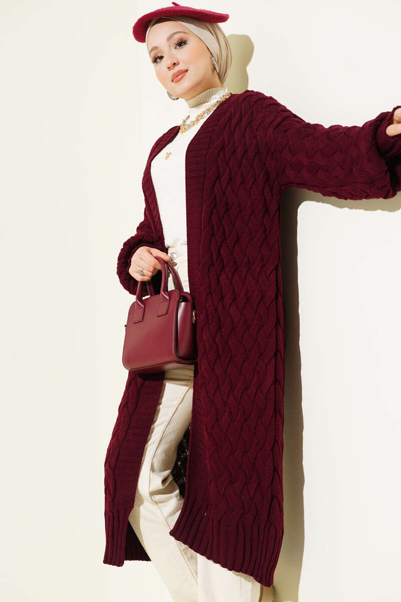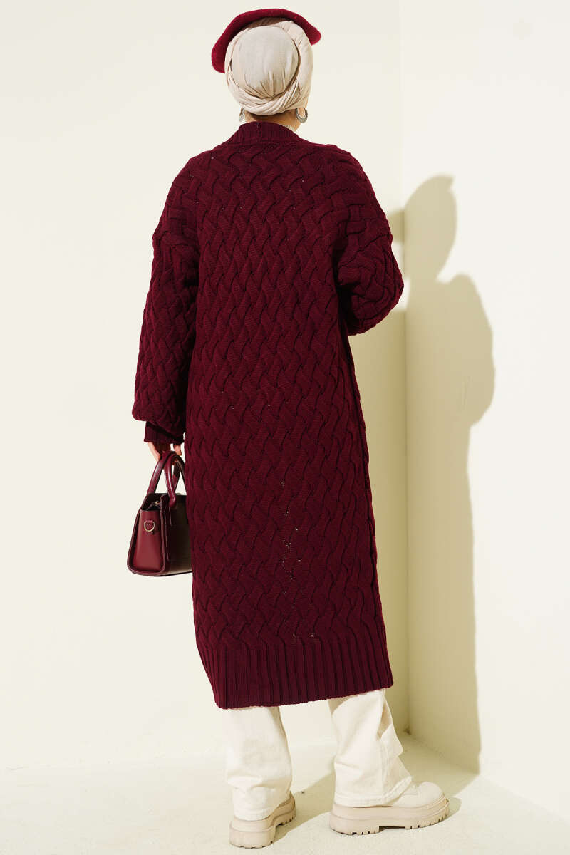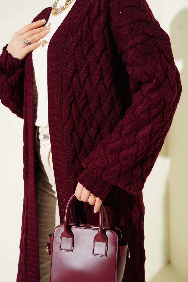 Sepet Örgülü Uzun Triko Hırka Siyah