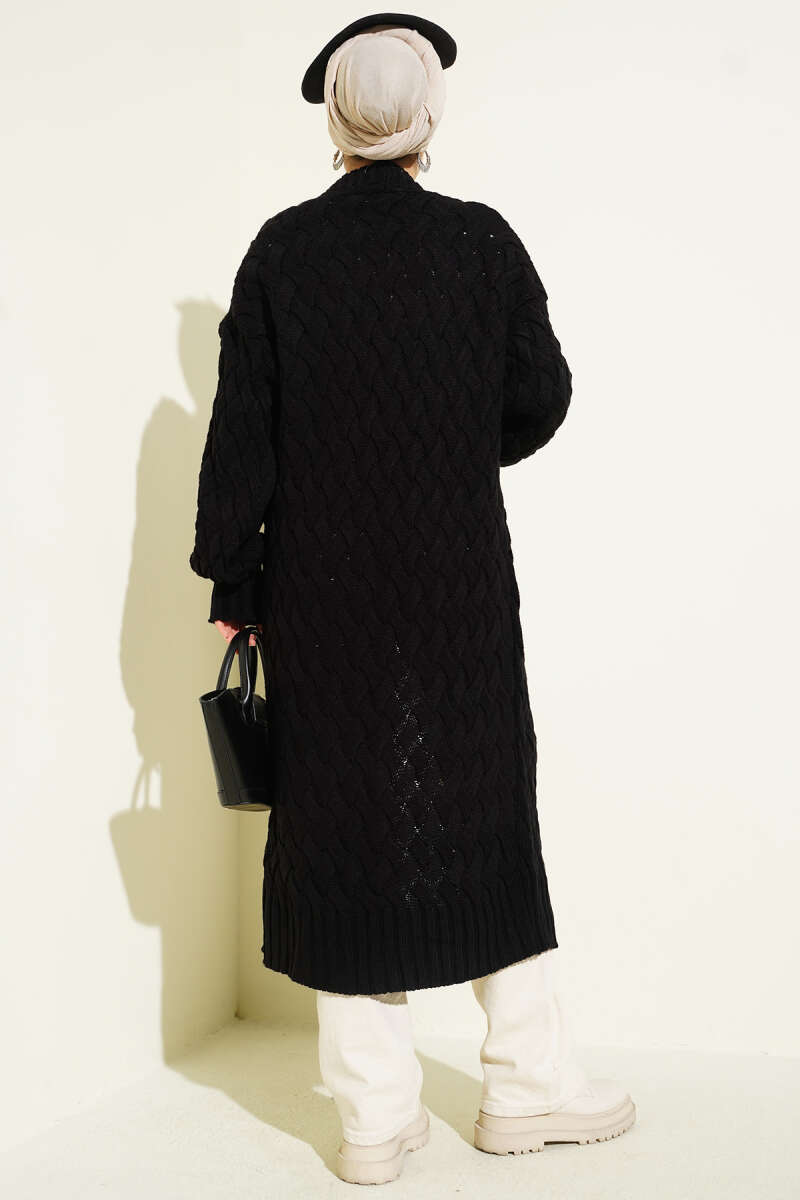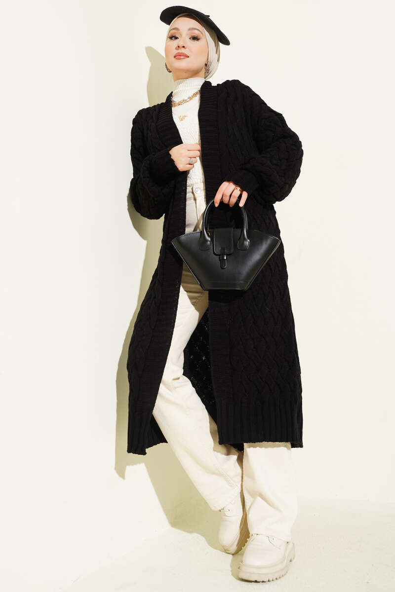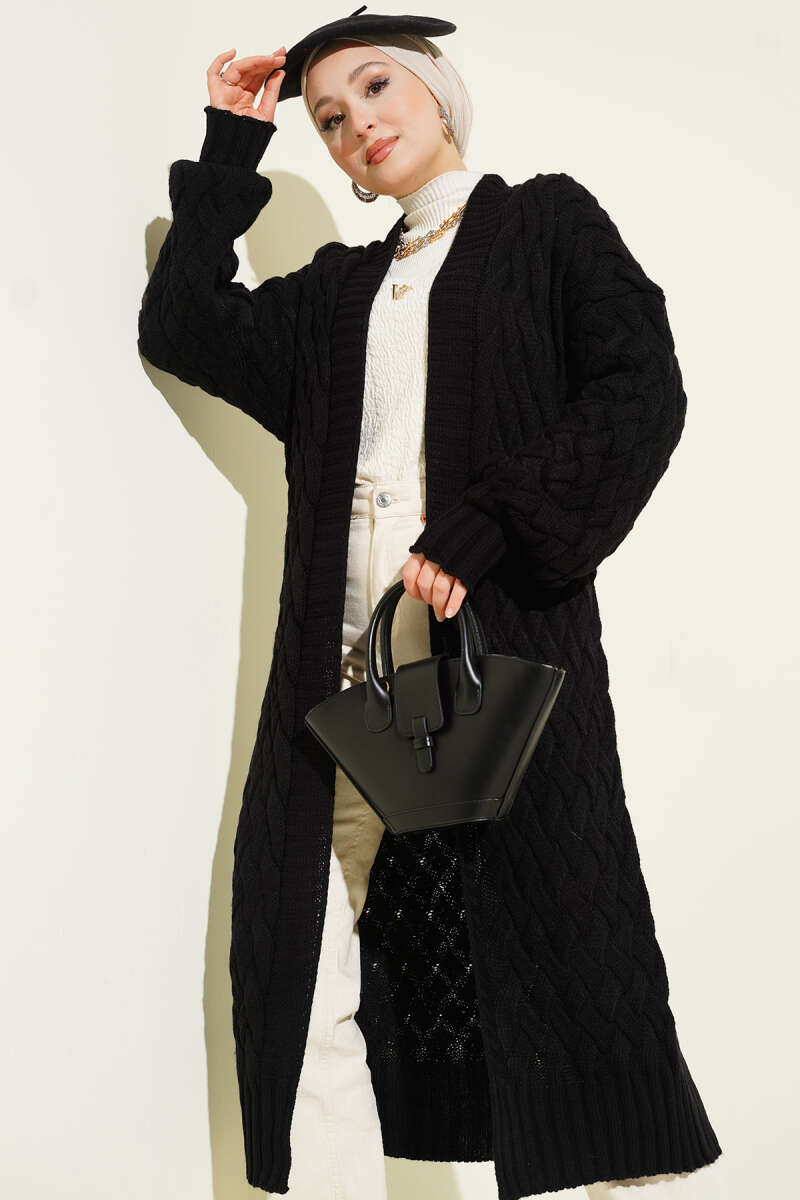 Sepet Örgülü Uzun Triko Hırka Bordo