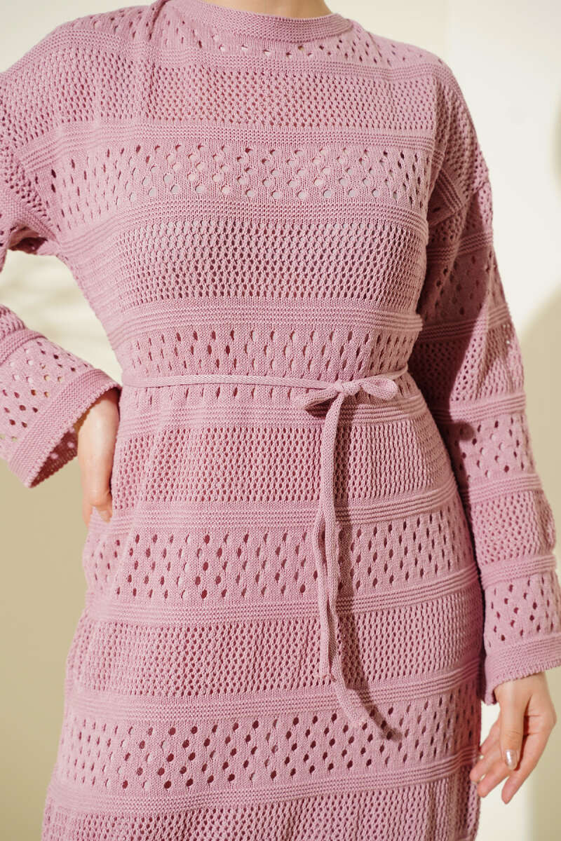 Bel Lastikli Metal Düğmeli Elbise Lila