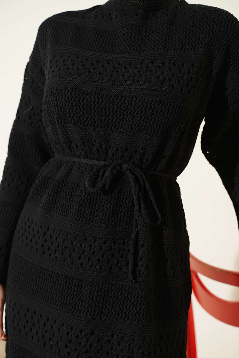 Şerit Ajur Desen Triko Elbise Zümrüt Yeşili