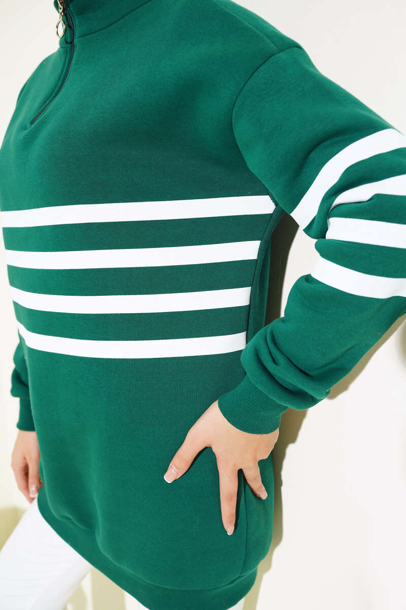 Yatay Çizgi Detaylı Triko Tunik Haki