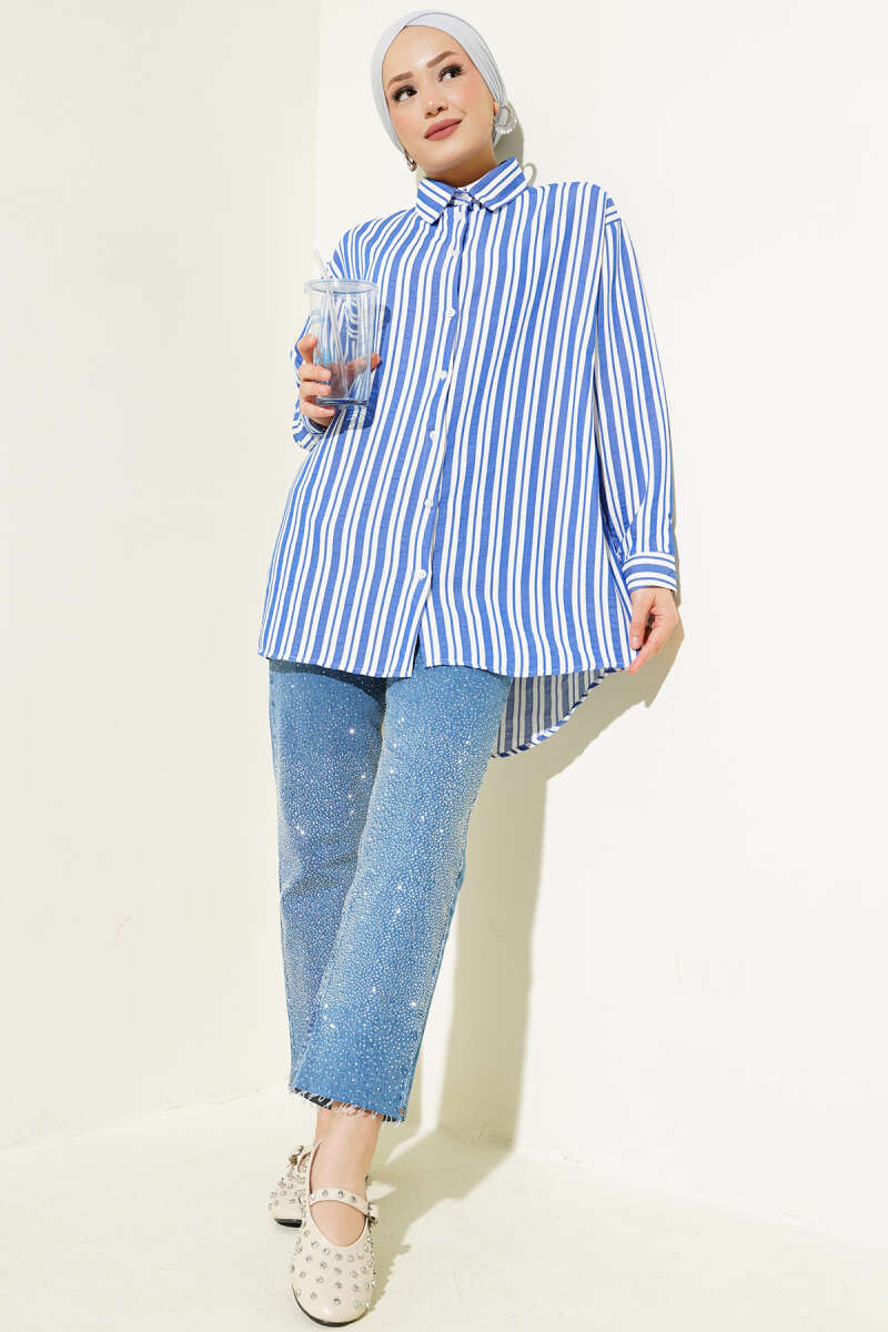 Gömlek Yaka Boy Düğmeli Tunik Petrol