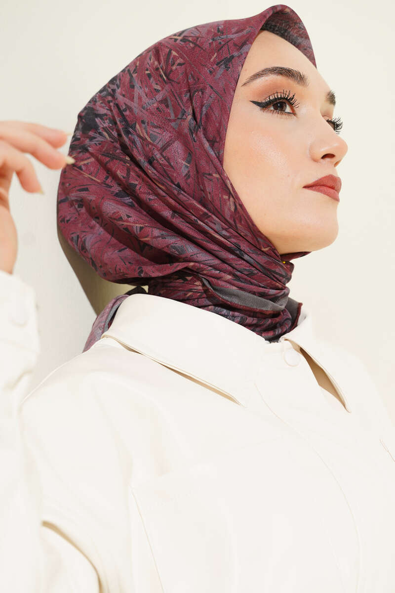 Şerit Desen Demore Eşarp Gül Kurusu