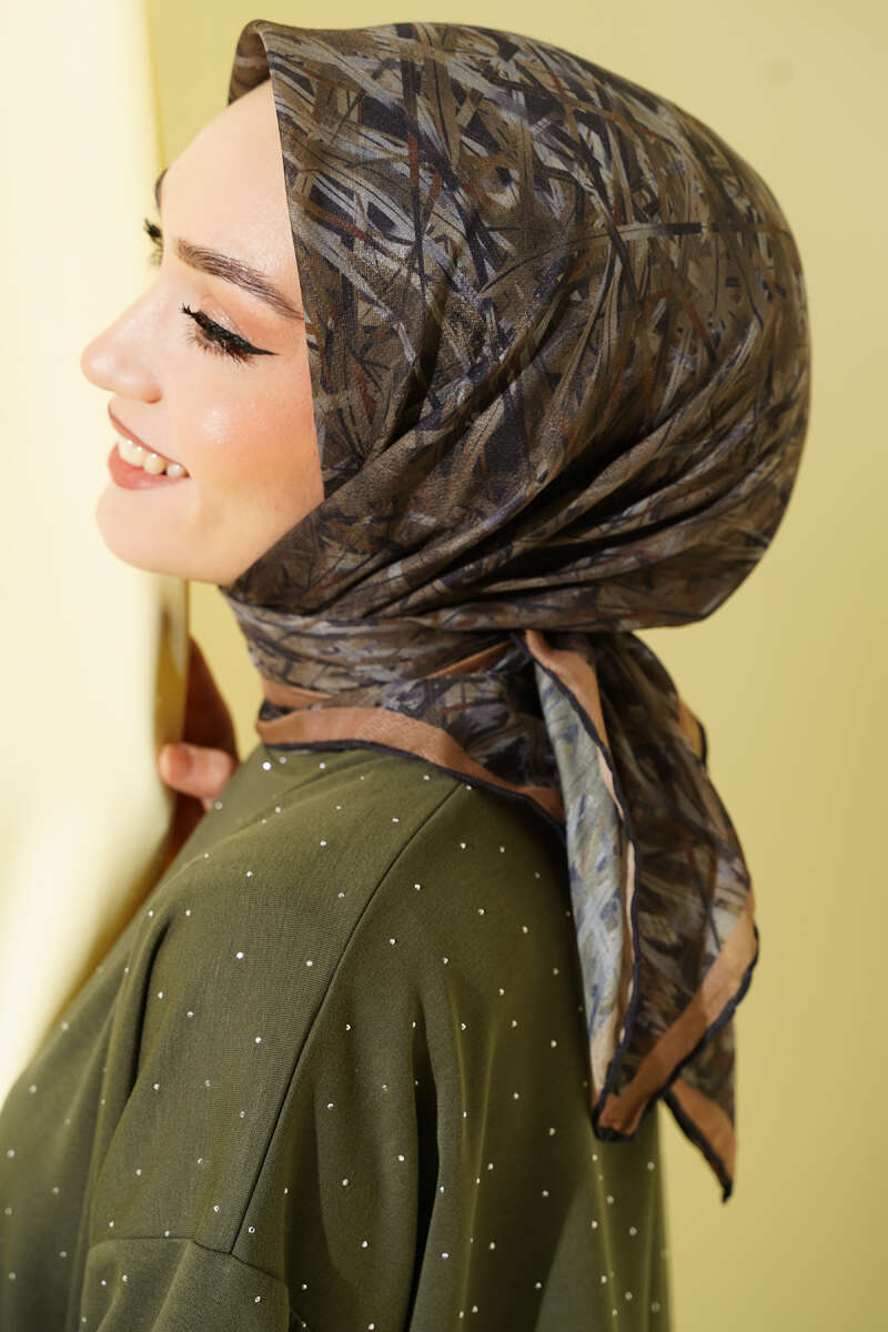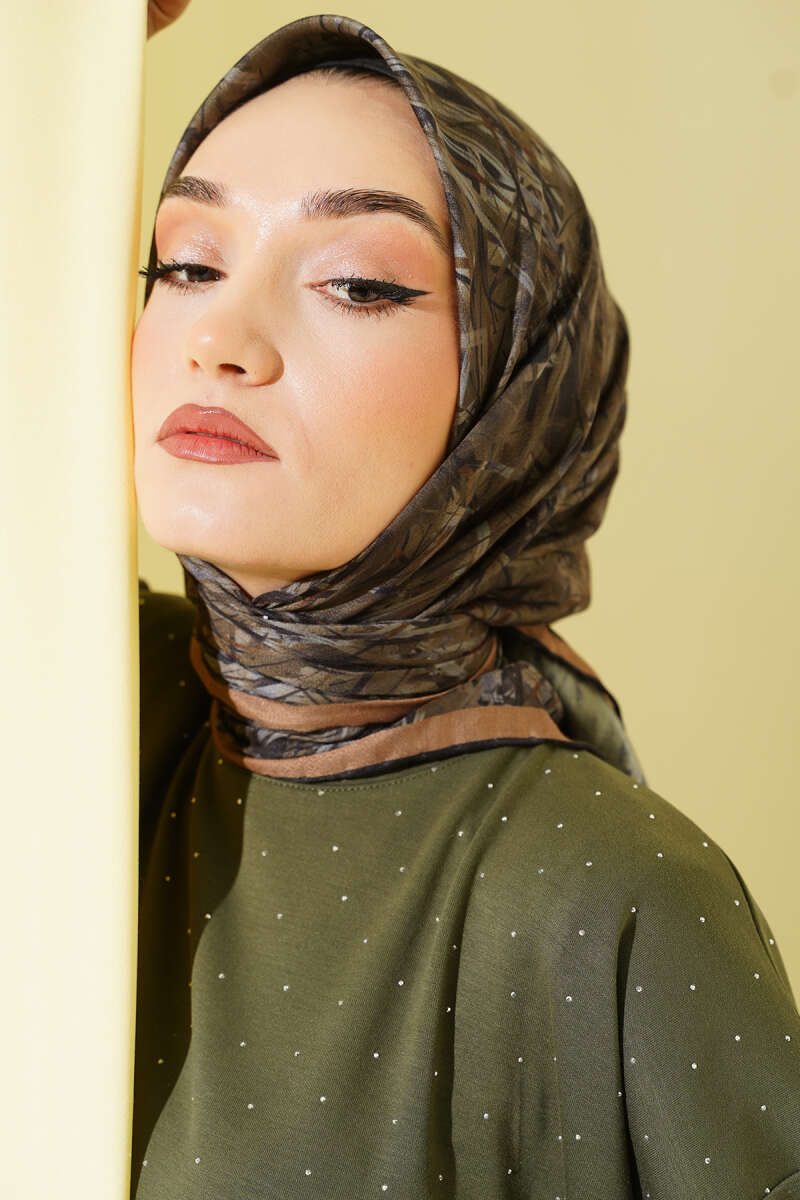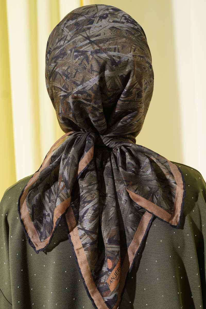 Desenli Ribanalı Demore Şal Lacivert Füme