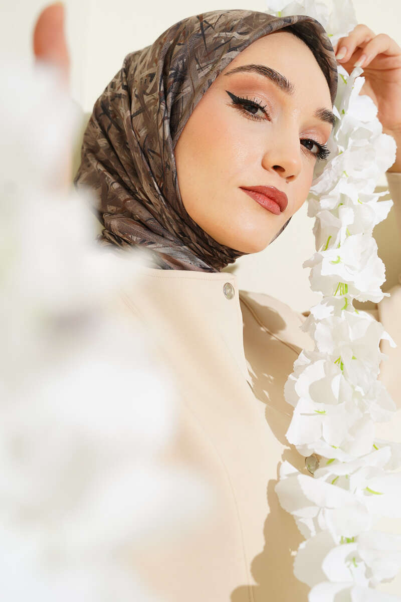 Ebruli Flowers Soft Şal Vizon