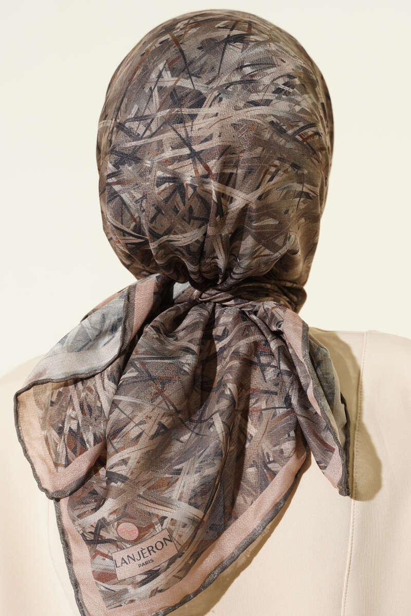 Şerit Desen Demore Eşarp Kahve