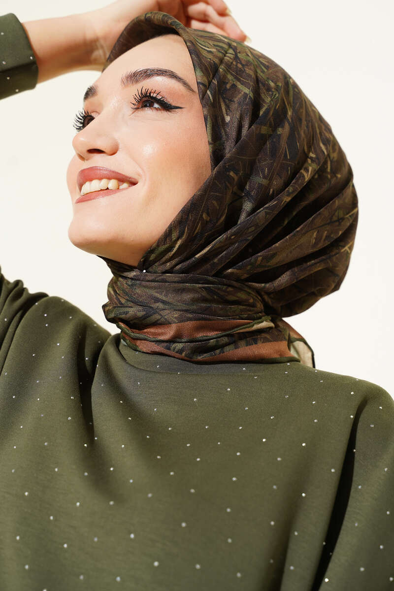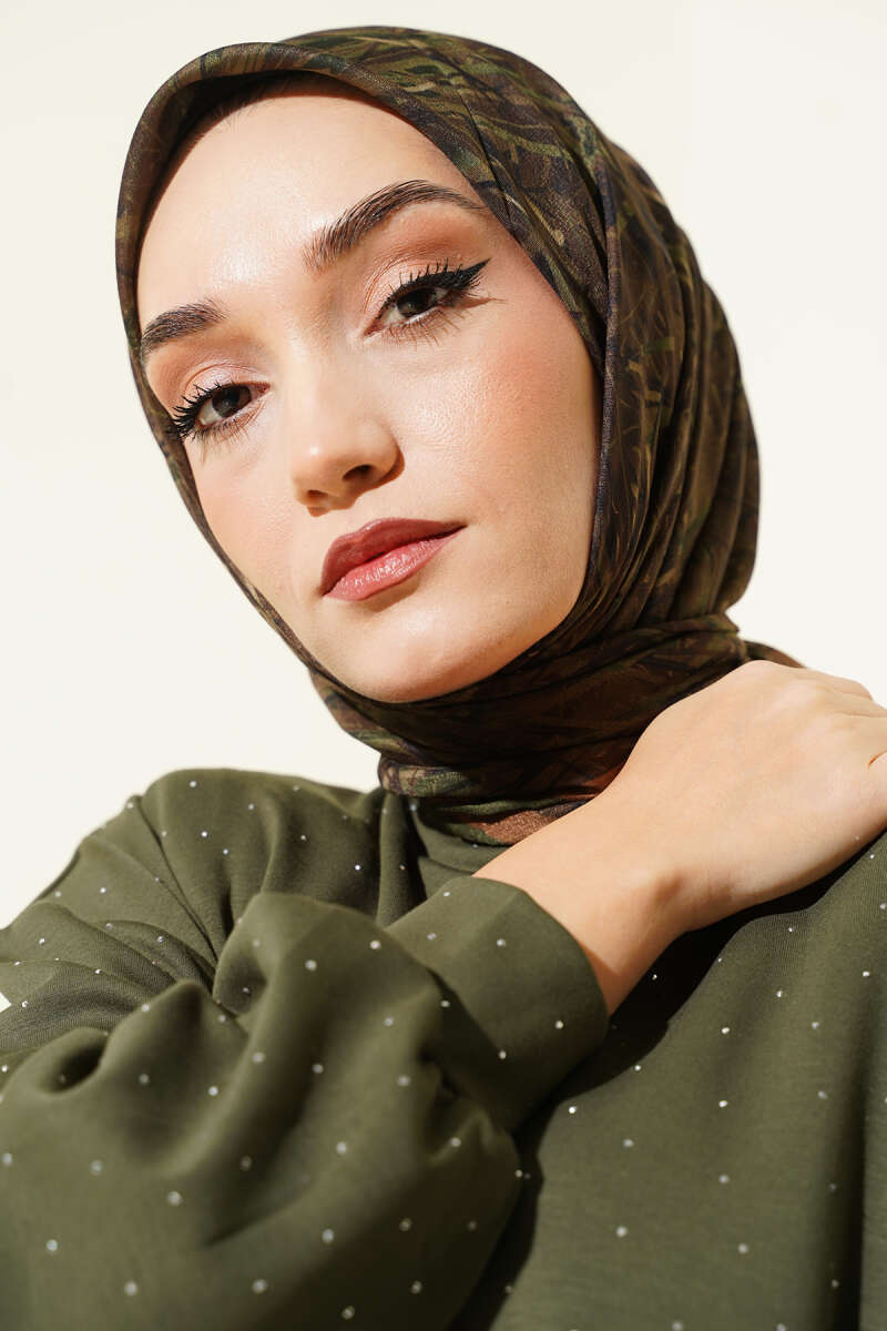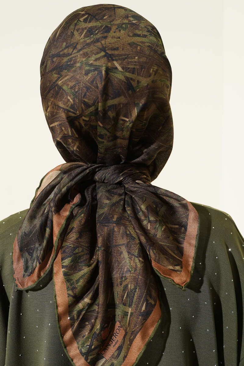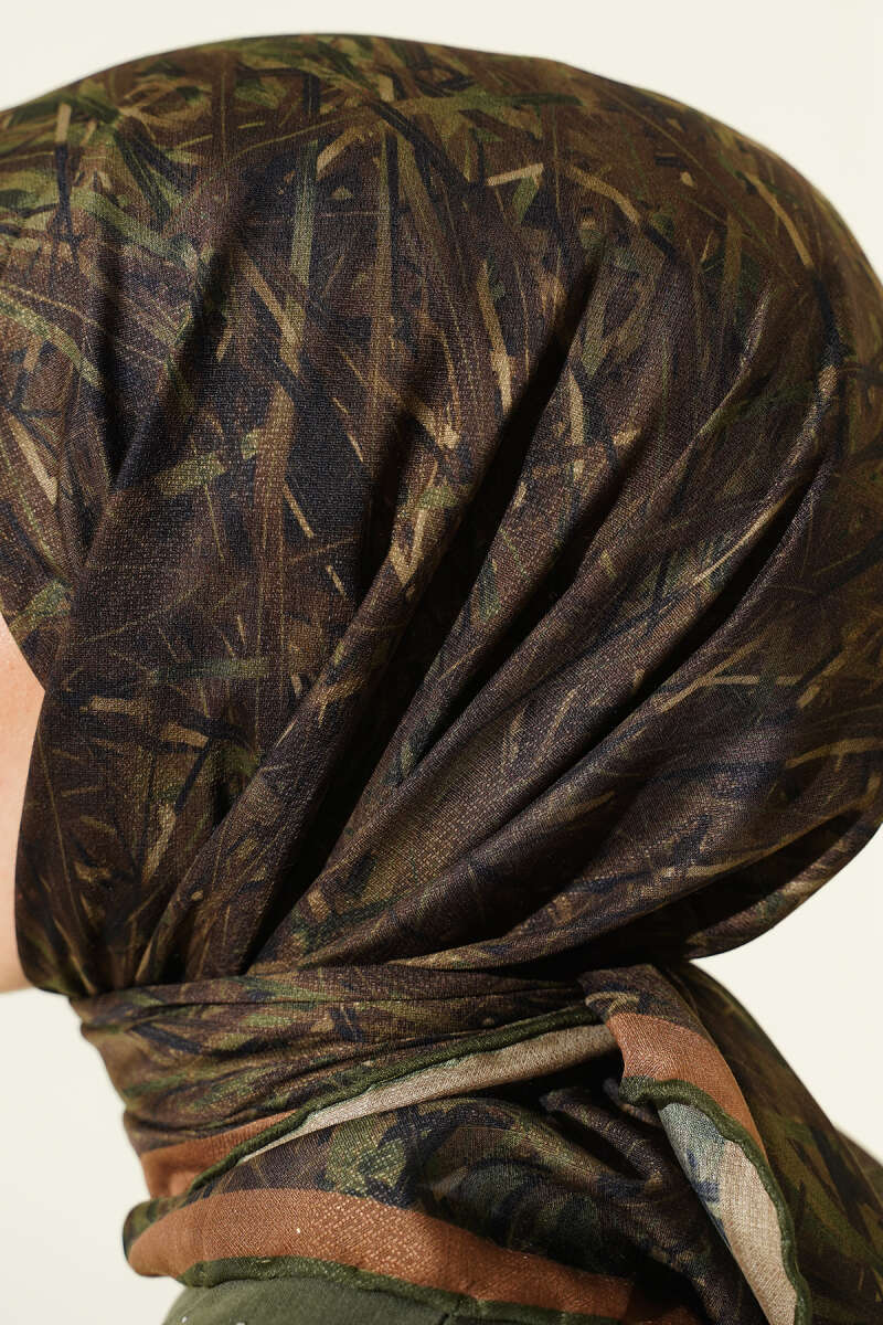 Şerit Desen Demore Eşarp Kamuflaj Yeşili