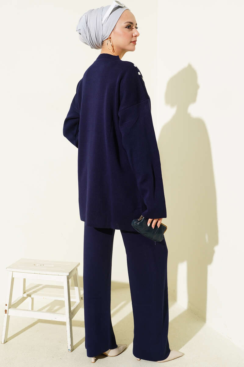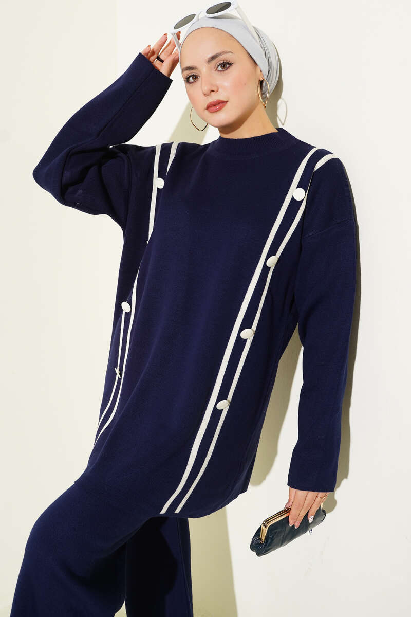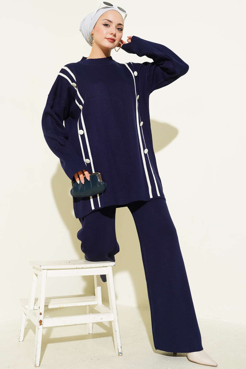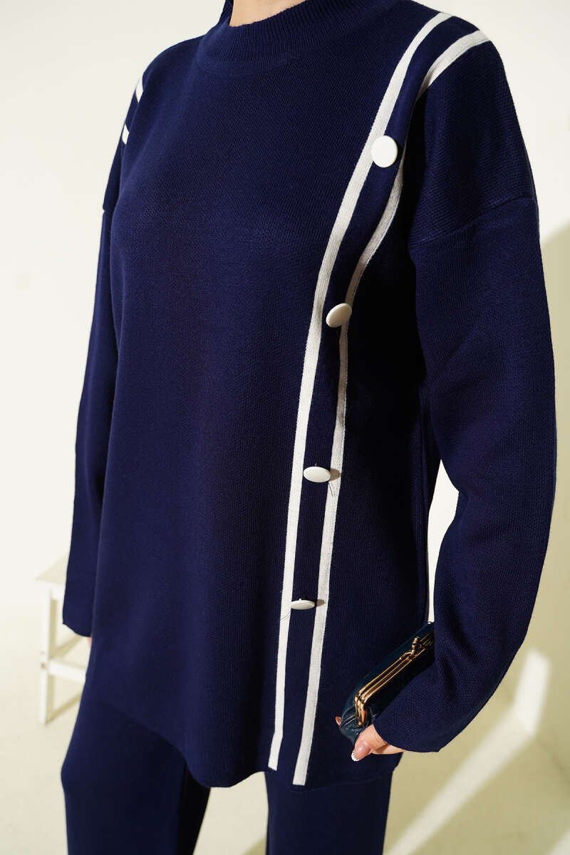 Bisiklet Yaka Yanları Metal Düğmeli İkili Takım Lacivert