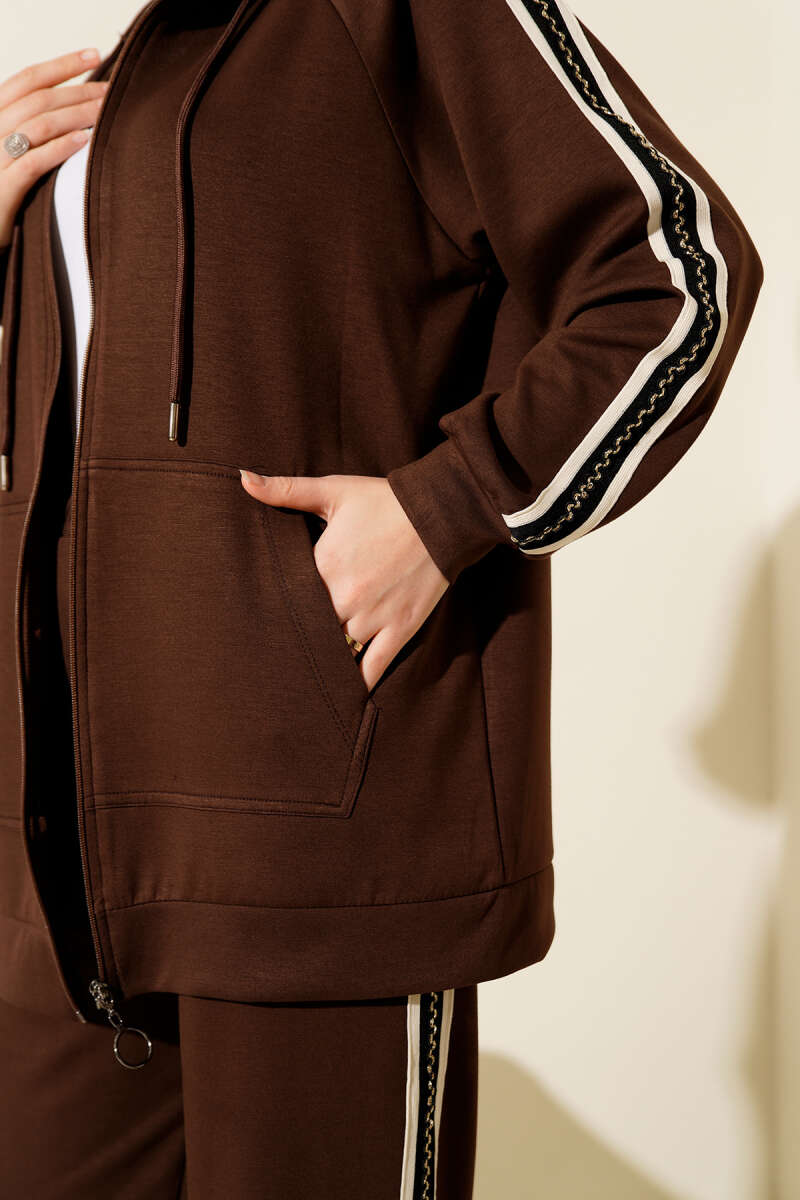 Çizgili Salaş Ceketli Triko Takım Zümrüt