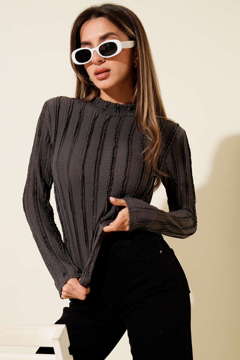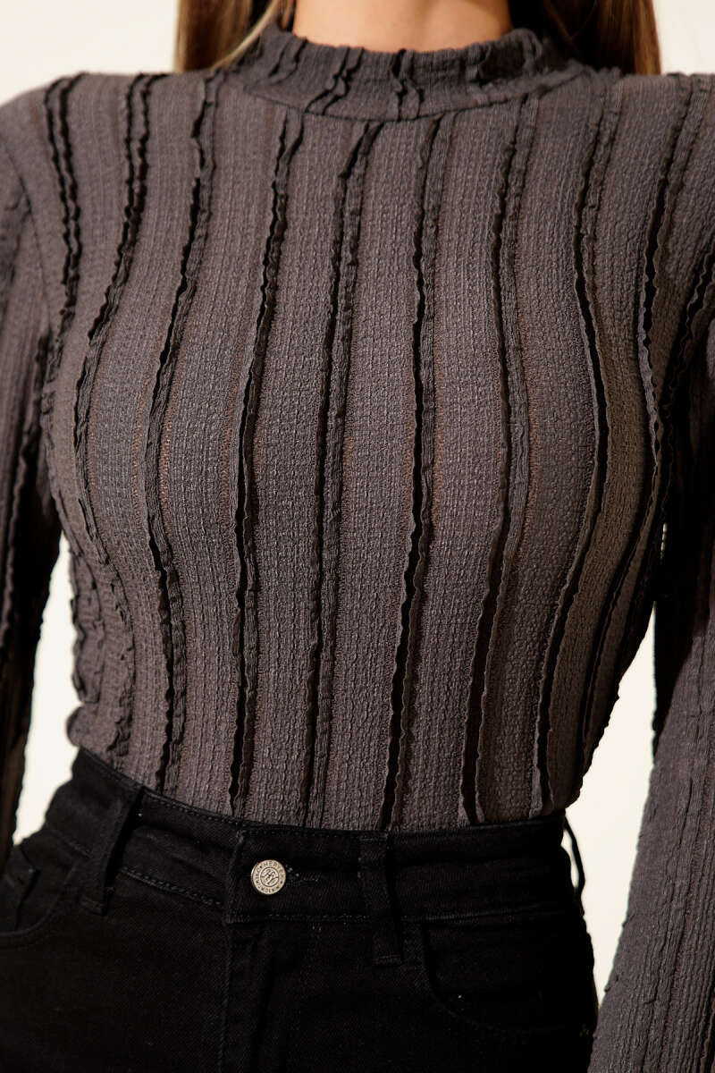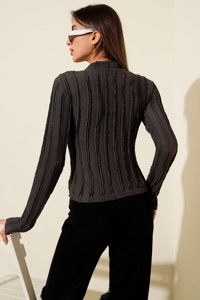 Şerit Fırfırlı Balıkçı Yaka Bluz Siyah