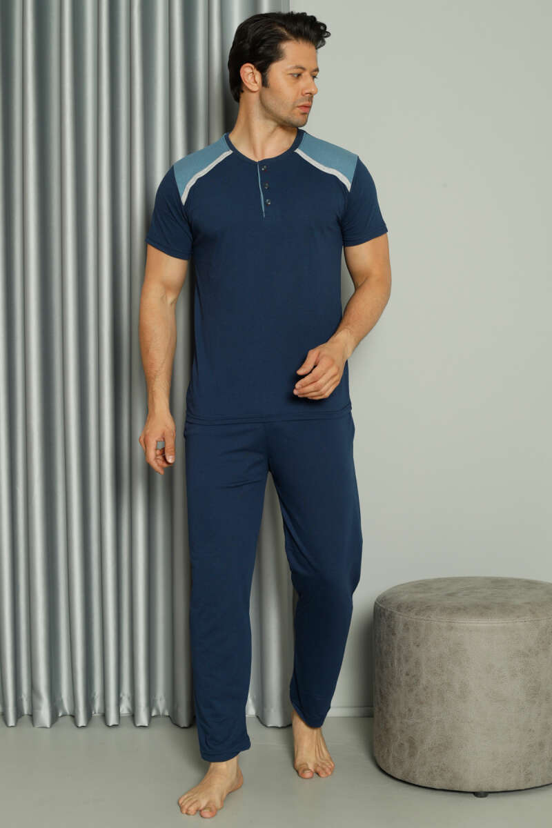 Şerit Garnili Kısa Kol Erkek Pijama Takımı Parlement