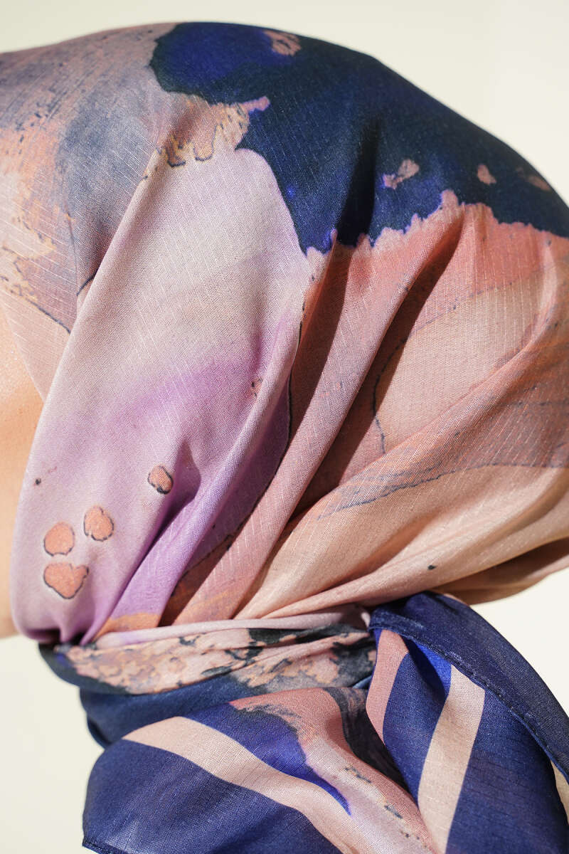 Motifli Modal Eşarp Lacivert