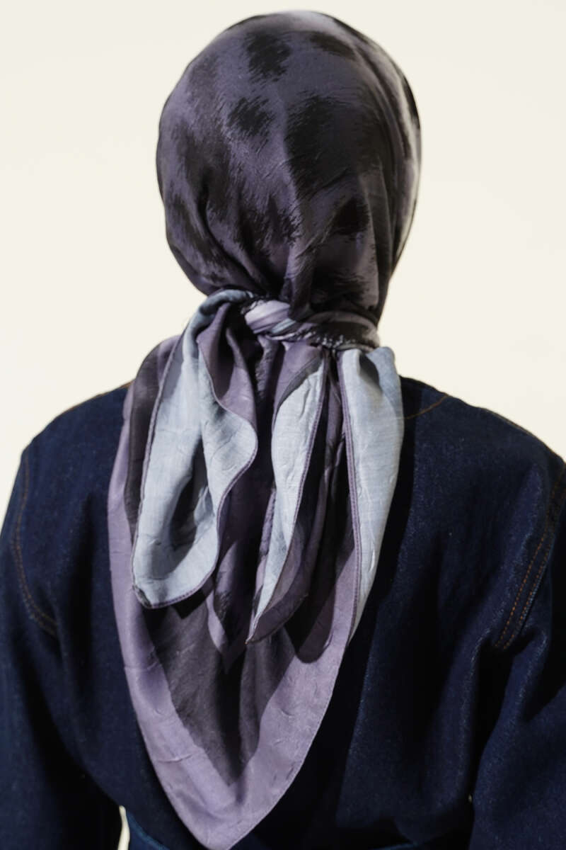 Şerit Geçişli Desenli Bambu Eşarp Lacivert