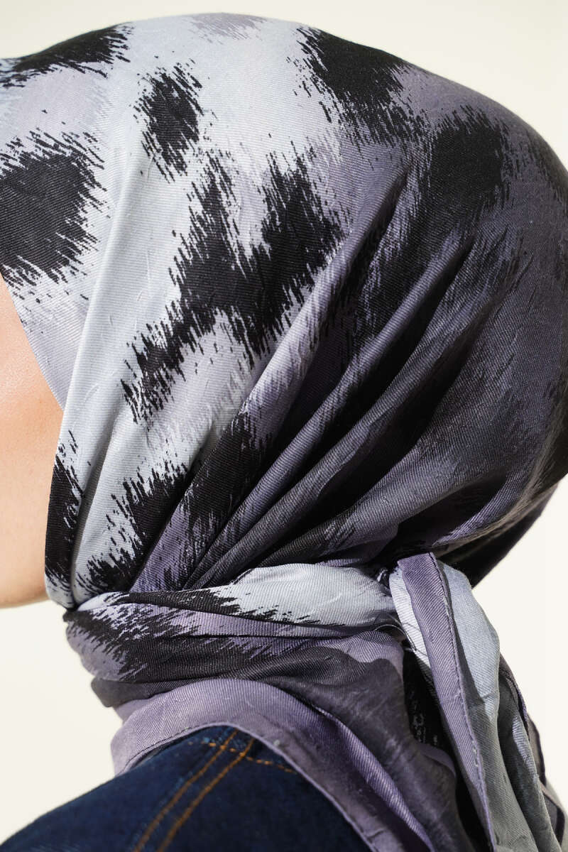 Şerit Geçişli Desenli Bambu Eşarp Siyah