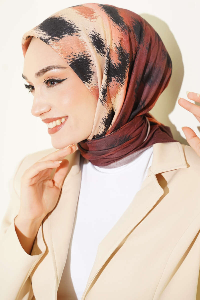 Şerit Geçişli Desenli Bambu Eşarp Kestane