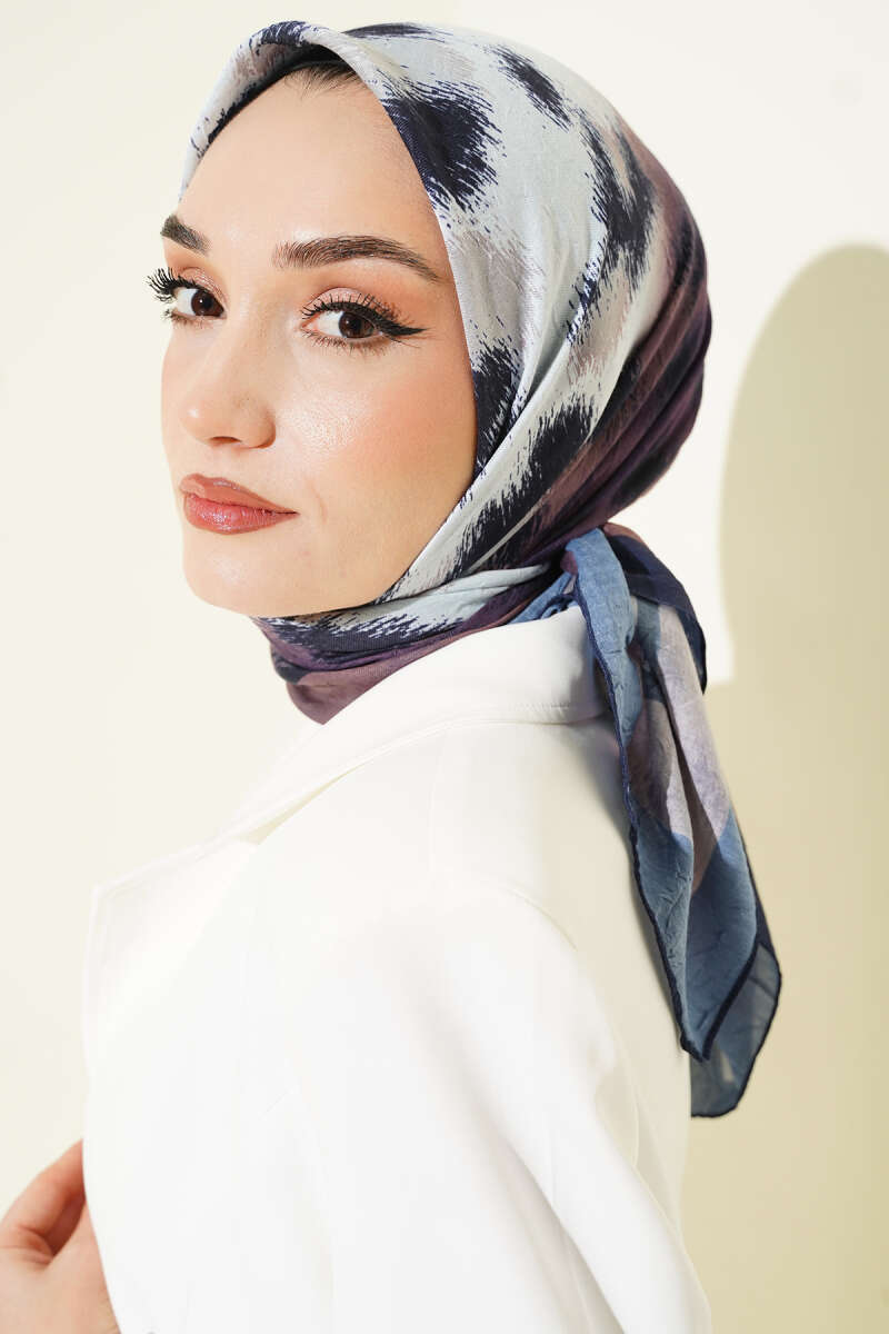 Şerit Geçişli Desenli Bambu Eşarp Lacivert