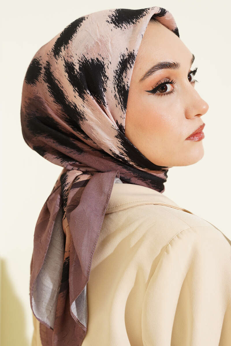 Şerit Geçişli Desenli Bambu Eşarp Toprak