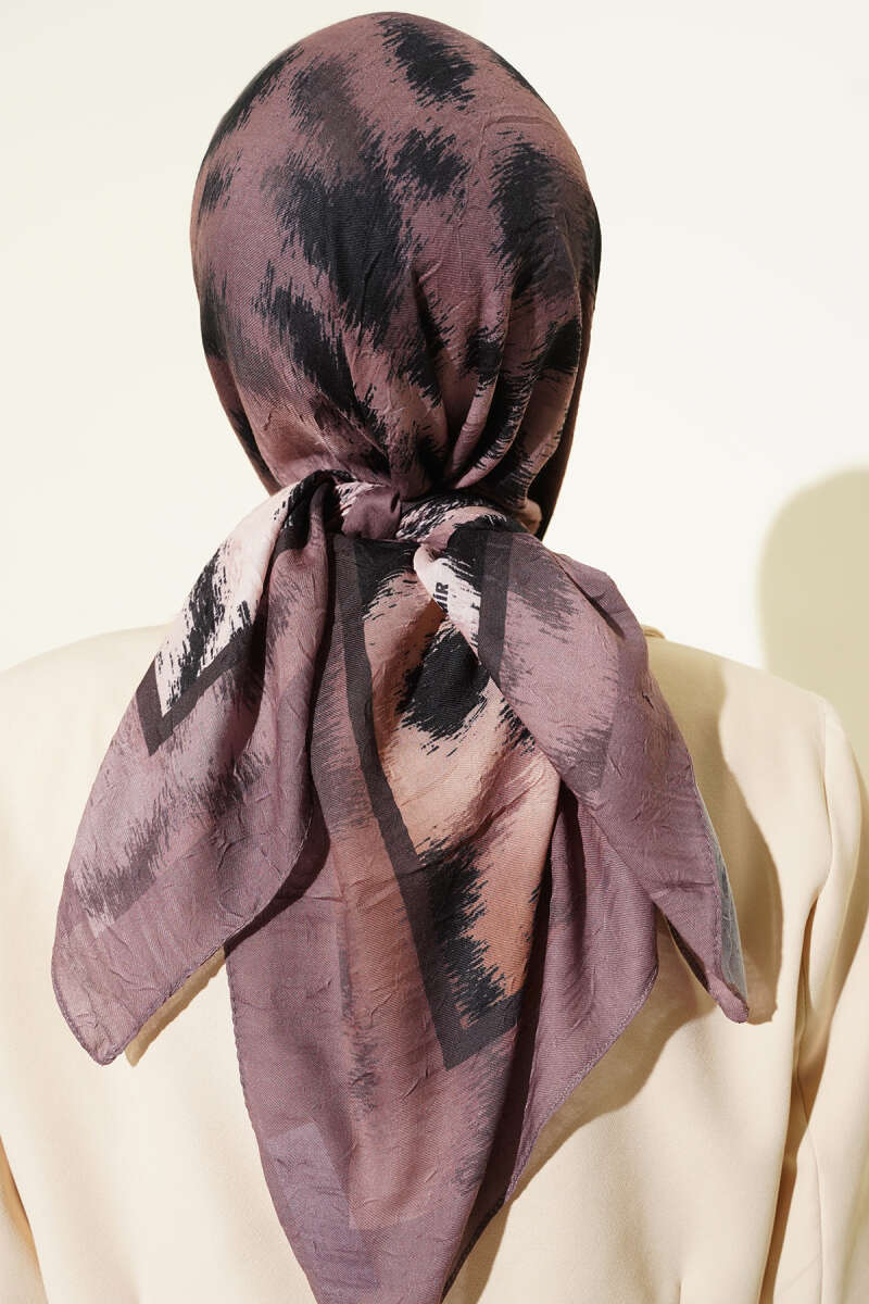 Şerit Geçişli Desenli Bambu Eşarp Morcivert