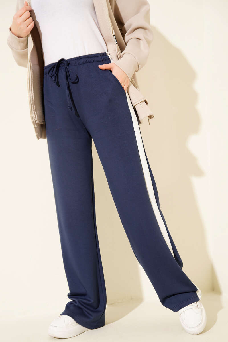 Şerit Geçişli İp Bağcıklı Pantolon Lacivert