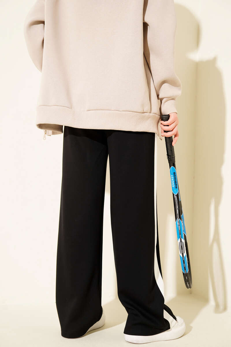 Şerit Geçişli İp Bağcıklı Pantolon Siyah